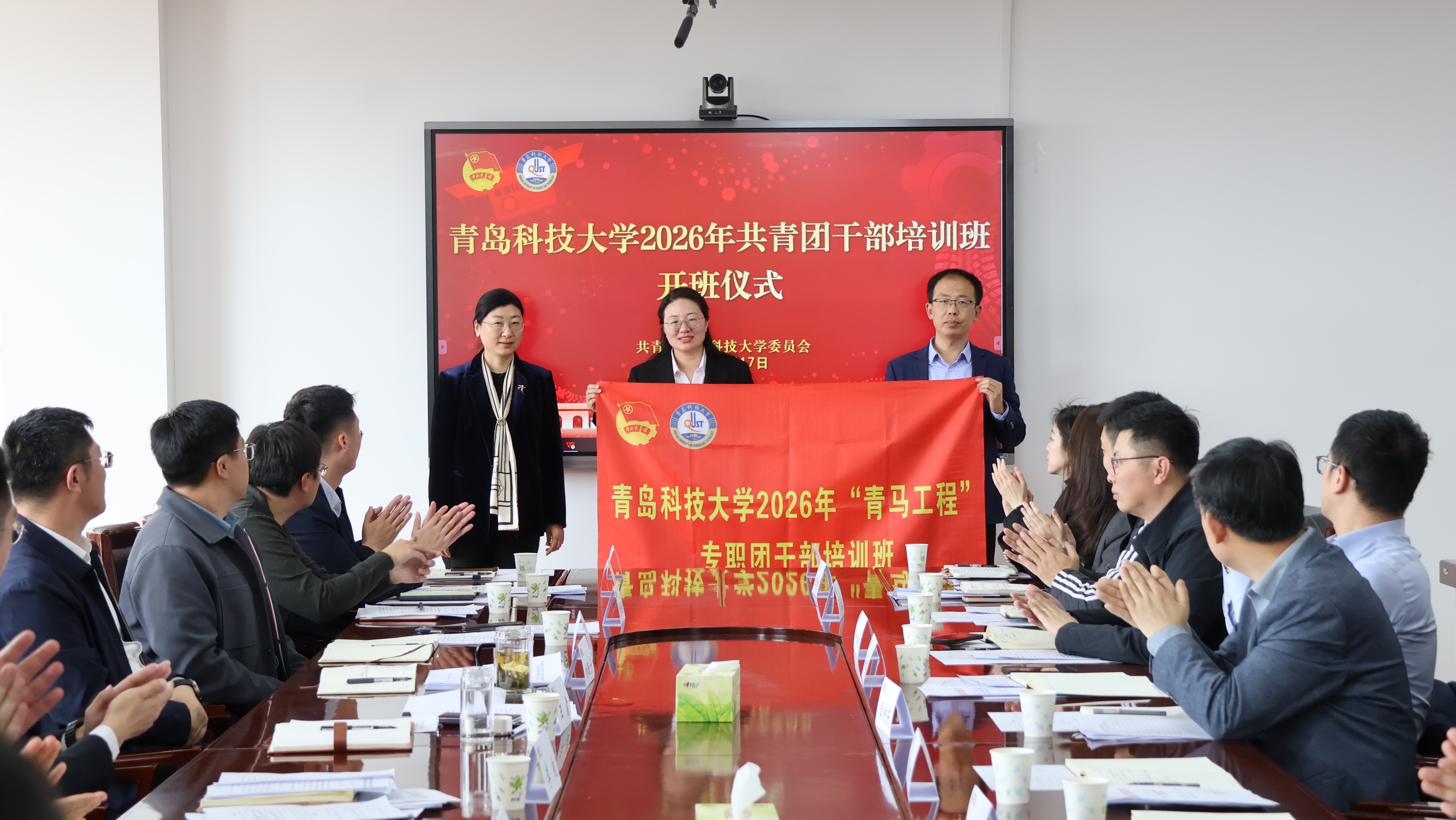 3月17日,学校2026年“青马工程”专职团干部培训班在崂山校区综合楼3015会议室举办,党委常委、副校长王震出席会议并讲话。