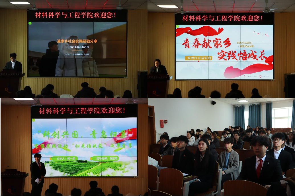 为总结寒假社会实践成果,真实展现基层风貌,彰显新时代青年责任担当与奉献精神,进一步引导广大材料学子心系社会、服务基层,积极投身各类实践服务事业,3月17日下午材料学院团委在学院楼101举办寒假实践归来话收获分享会。