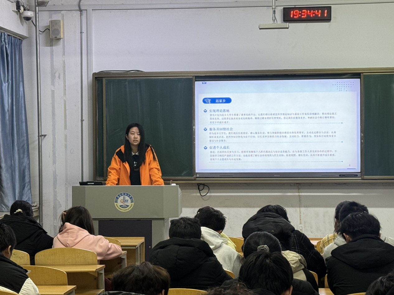 分享会上,学院寒假社会实践优秀青年学生代表依次上台发言。大家结合自身真实经历,分别围绕社区志愿服务、企业走访调研、助力乡村振兴、弘扬传统文化等多个主题展开分享。从深入基层开展便民服务,到走进企业了解行业发展动态;从投身乡村建设助力产业发展,到挖掘本土文化讲好时代故事,同学们用朴实的语言讲述实践过程中的所见所闻、所思所悟,既有直面问题的思考,也有服务他人的温暖,内容鲜活生动、兼具温度与深度,充分展现出生物工程学院青年学子扎根基层、知行合一、勇于担当的良好精神风貌。