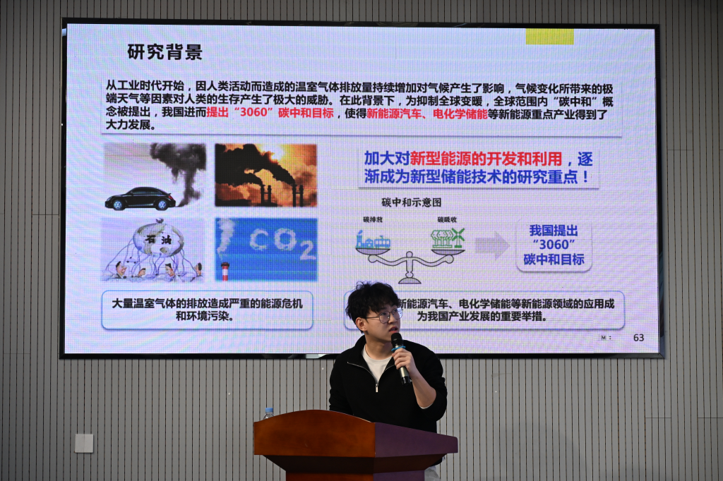 陈昱天以“钠离子电池聚阴离子型正极材料的多尺度改性策略与机理研究”为题,详细介绍了锂离子电池发展现状,重点讲解了钒基聚阴离子正极材料向低成本铁基聚阴离子正极材料转变的研究思路。他鼓励在场学子主动探索研究方向,稳步实现从“科研新手”到“独立研究者”的顺利过渡。