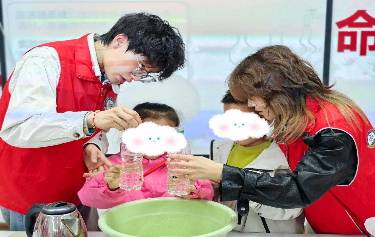 活动中,志愿者们以寓教于乐为核心,打造“讲+演+练”一体化的科普模式。先用通俗的语言拆解深奥的科学原理,以互动问答激发探索兴趣;再通过“纸片镇直尺”、“气球瓶喷泉”、“往高处流的水”三个趣味实验,将抽象物理知识直观呈现;最后指导孩子们分组动手实操,让大家在“发现-探究-验证”的闭环中沉浸式体验科学探索,掌握核心原理。