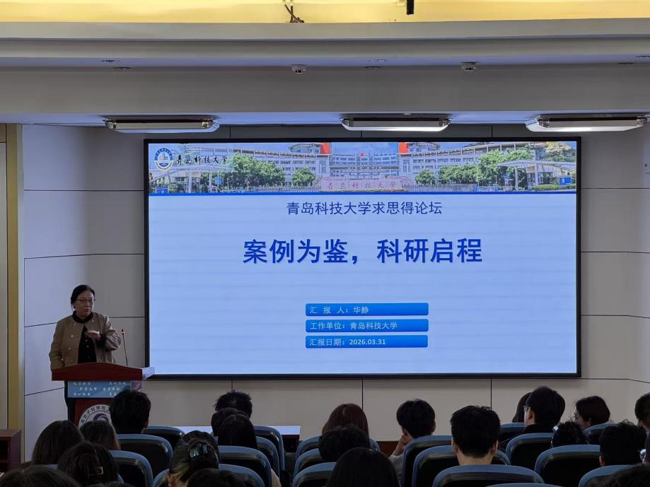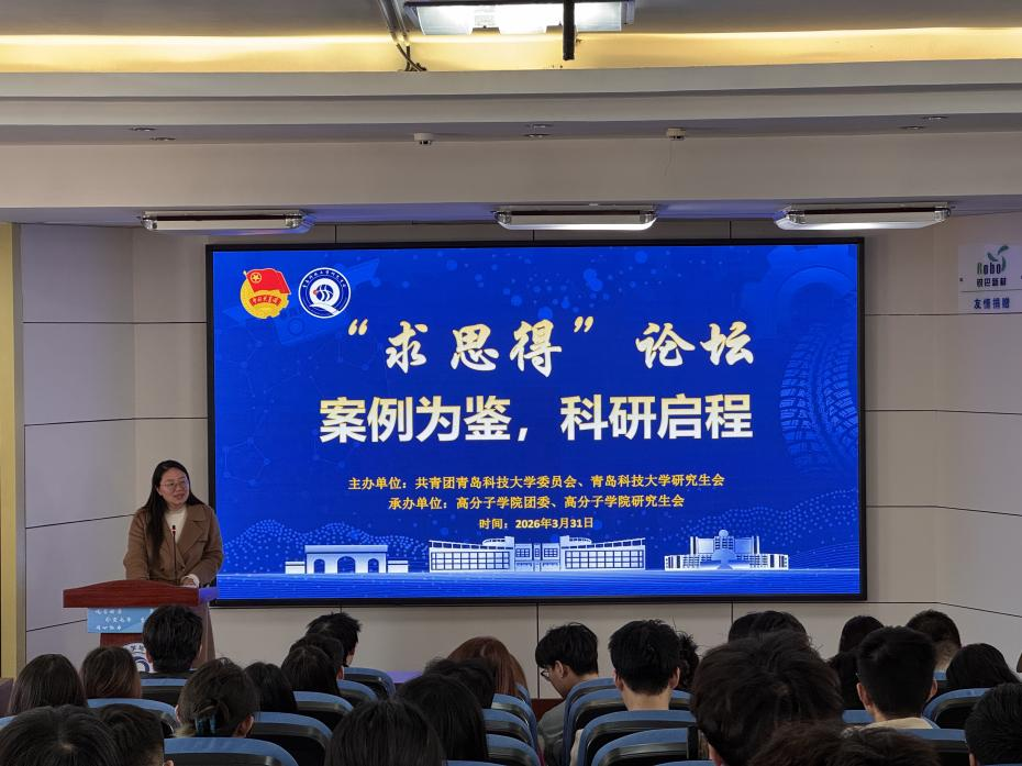 为构筑师生交流纽带,激发科研创新动力,2026年3 月 31 日,高分子学院团委在学院楼401 报告厅成功举办“求思得”论坛专题报告。本次论坛特邀学院教授、博士生导师华静老师作题为《案例为鉴,科研启程》专题分享,学院团委书记刘妍君老师主持论坛。