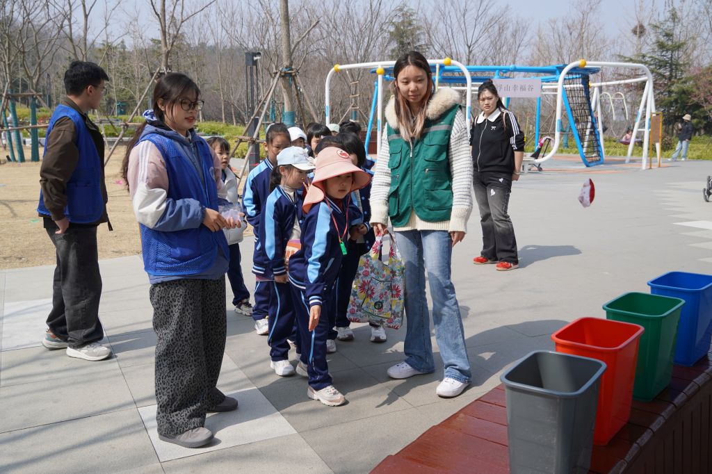 活动伊始,志愿者们带领孩子们开展垃圾分类沙包投掷互动游戏。活动现场,孩子们手持印有各类垃圾图案的沙包,学习可回收物、有害垃圾、厨余垃圾、其他垃圾的分类知识,实现了强身健体与思想教育的双向提升,让绿色低碳、文明环保的理念深入人心。
