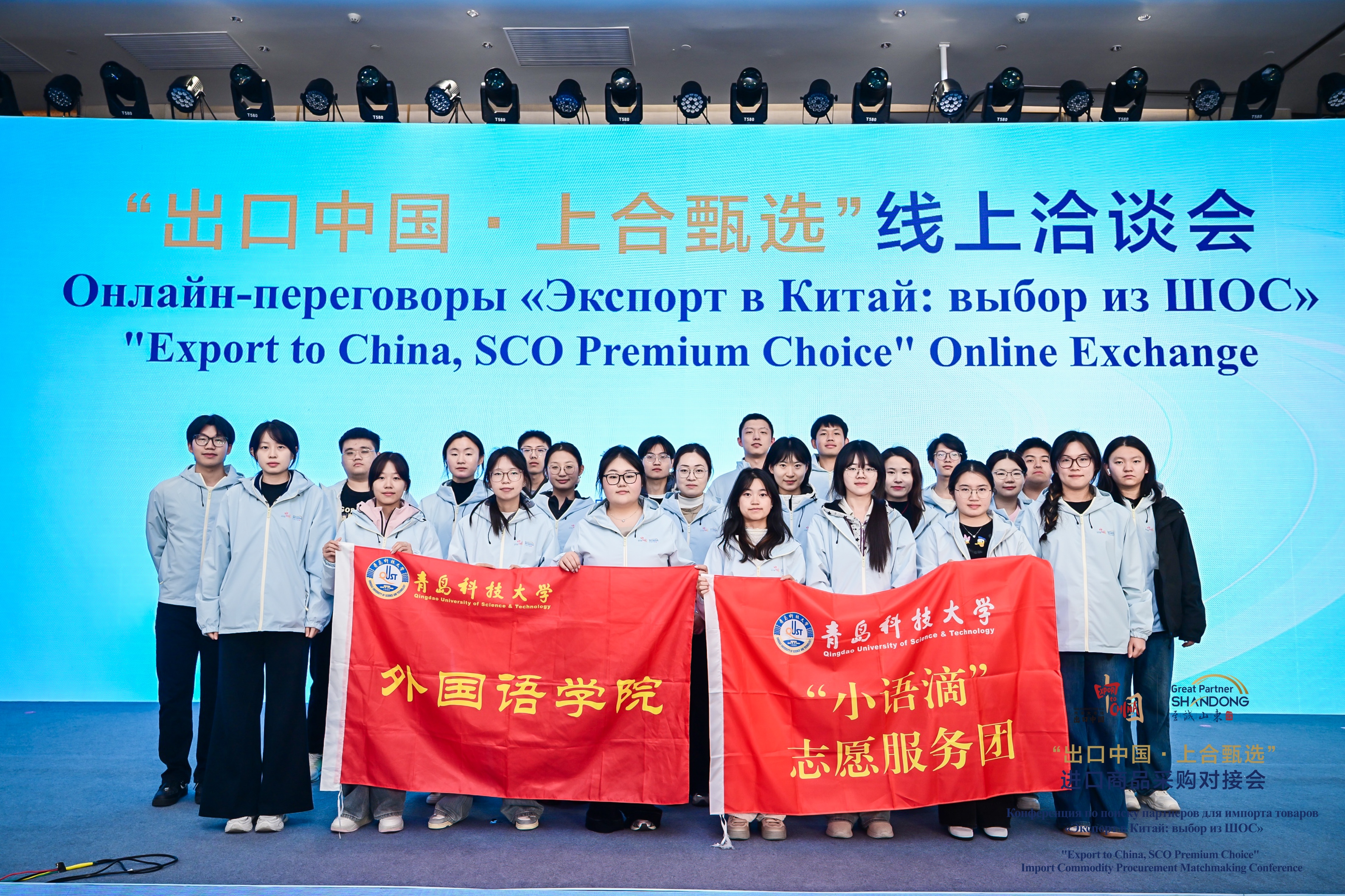 3月30日,“出口中国・上合甄选”中国(山东)—上合组织国家进口商品采购对接会在青岛・上合之珠国际博览中心开幕。本次活动由山东省商务厅主办,聚焦上合组织国家经贸合作,搭建起山东与上合组织国家地方政府、企业间的精准对接平台,推动进口贸易扩容提质与地方经贸合作走深走实。学院团委充分发挥学科优势和青年力量,精准选派“小语滴”志愿服务团中的26名俄语志愿者和7名英语志愿者奔赴会展一线。志愿者以扎实的语言功底、饱满的服务热情和严谨的工作态度,活跃在多个关键点位、承担多项服务职责,为活动顺利开展提供坚实语言保障,赢得了与会各方的高度评价。