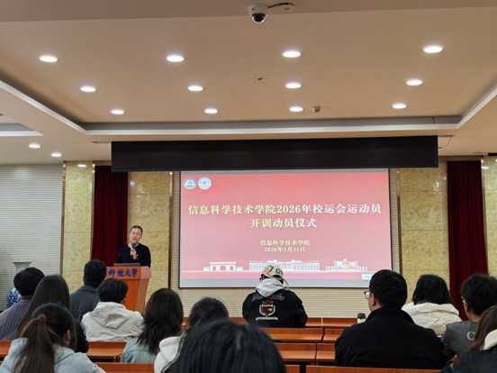 为深入推进“以体育人”工作,激发广大学生参与体育锻炼的积极性与荣誉感,做好学校2026年运动会训练备战,信息学院于3月31在学院楼402会议室召开2026年校运动会开训动员仪式。学院党委副书记兼副院长严增兴出席并讲话,学院体育工作负责老师、全体参赛运动员及体育联盟学生骨干参加仪式。
