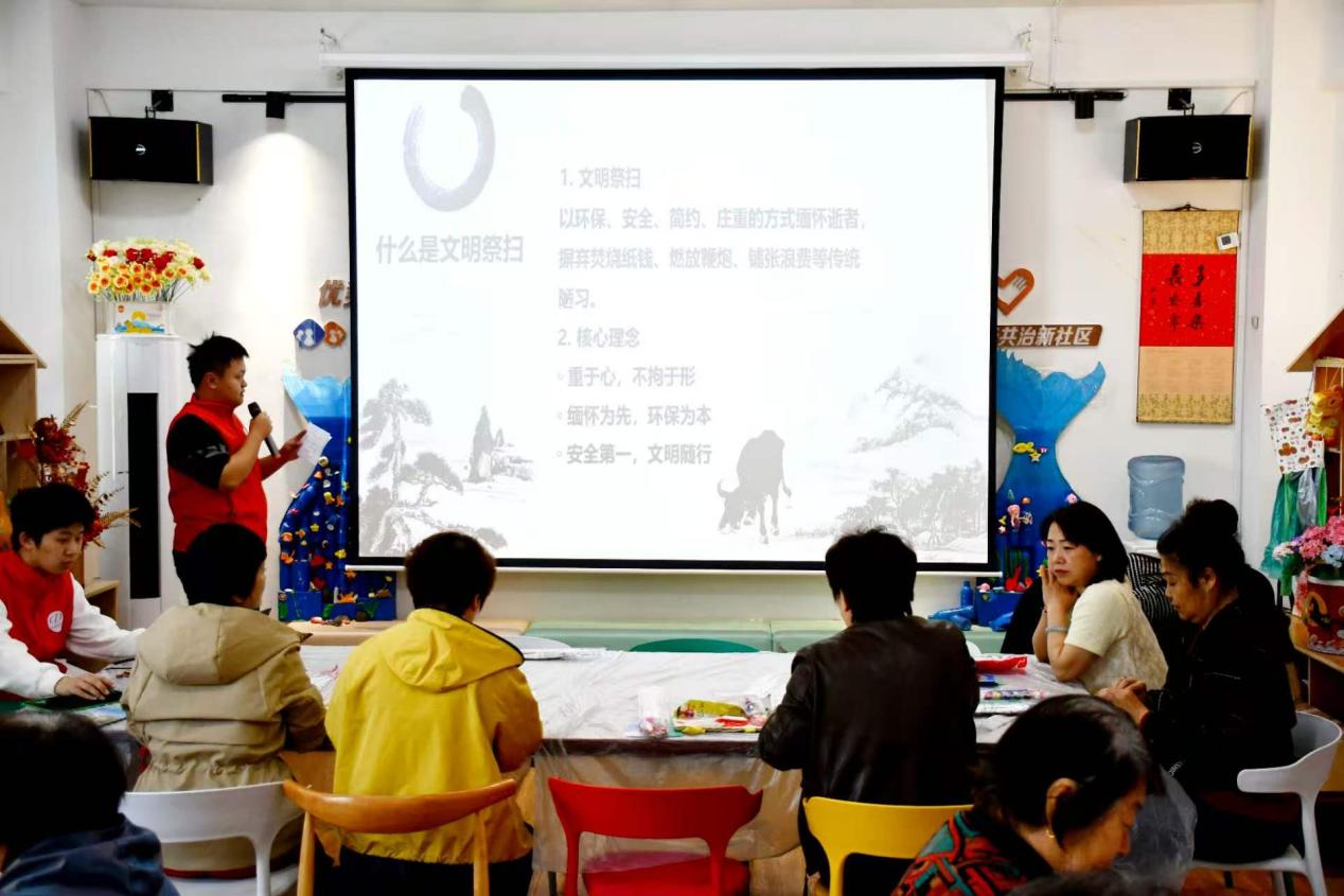 社区服务,倡导文明祭扫。学院组织文明宣传与社区服务活动。志愿者们走进社区,开展“文明祭扫·绿色追思”主题宣讲,他们向居民细致讲解文明祭扫的内涵与意义,有效引导居民树立绿色、环保的追思观念。