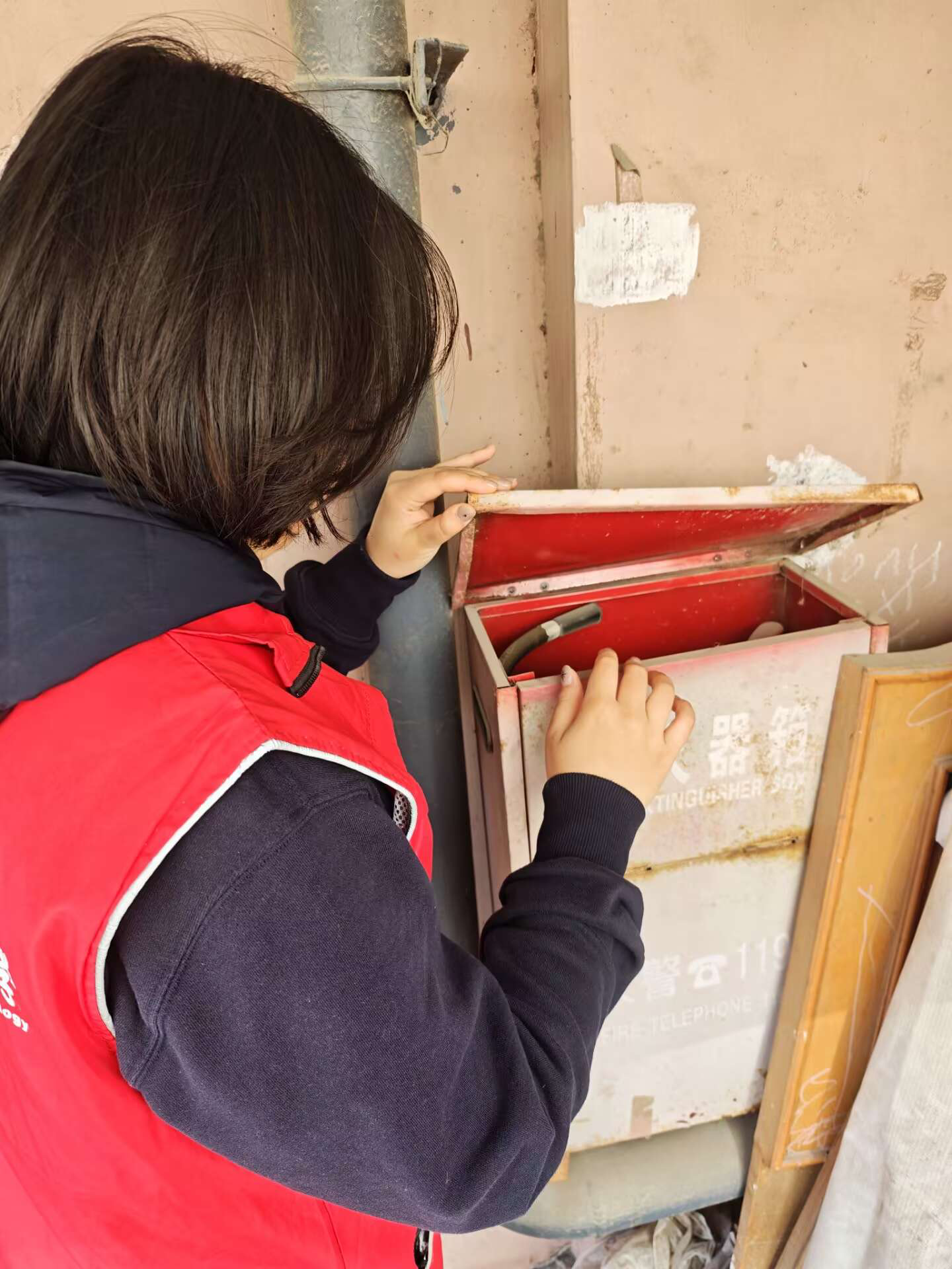 活动中,志愿者们分工明确,深入社区楼栋及公共区域,对消防设施、消防通道、安全标识等开展全面隐患排查,仔细记录问题并及时反馈给社区相关部门。同时,志愿者们向居民普及防火、用电安全及应急逃生知识,切实增强居民消防安全意识。