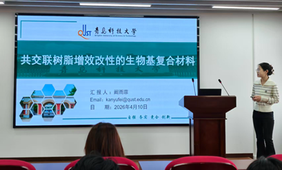 4月10日,化工学院团委“求思得”论坛在CCF楼814学术报告厅成功举办。本次论坛特邀我校师资博士后阚雨菲老师作题为“共交联树脂增效改性的生物基复合材料”的专题学术报告,百余名研究生到场聆听交流。