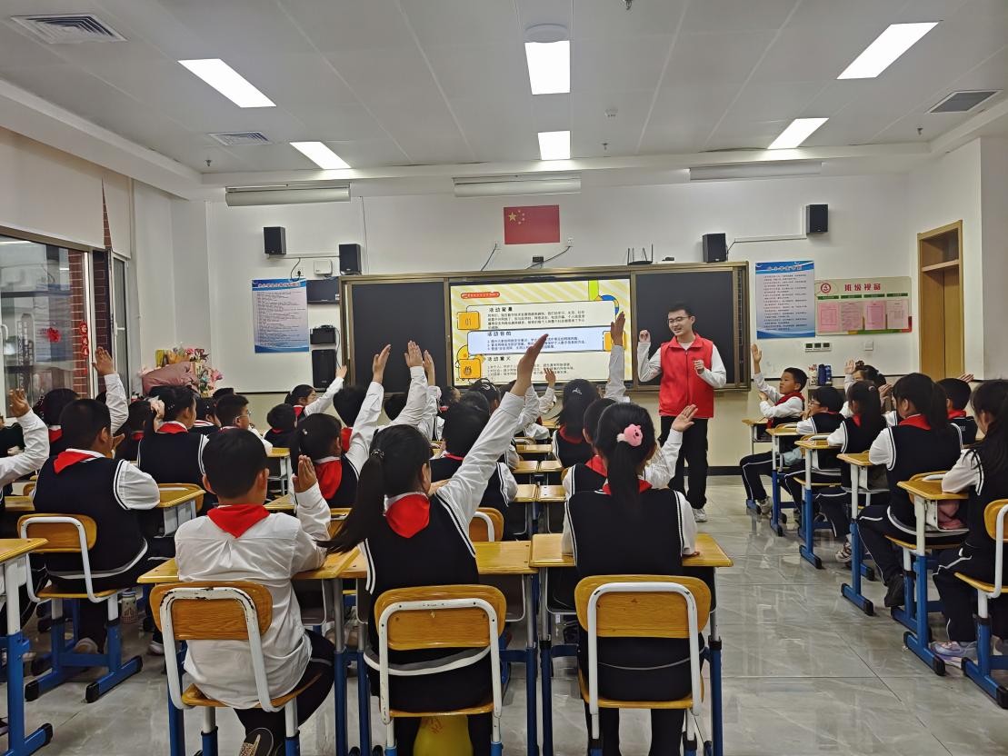 活动现场特别设置了“沉浸式情景模拟”环节,志愿者现场演绎“点击陌生链接”“网友套取信息”等典型风险场景,邀请小学生化身“网络安全小法官”进行现场“断案”。这种“玩中学、学中悟”的双向互动模式,不仅让防范知识深植于少年儿童心中,更让大学生志愿者在教学设计与临场应变中提升了专业应用能力与社会责任感。