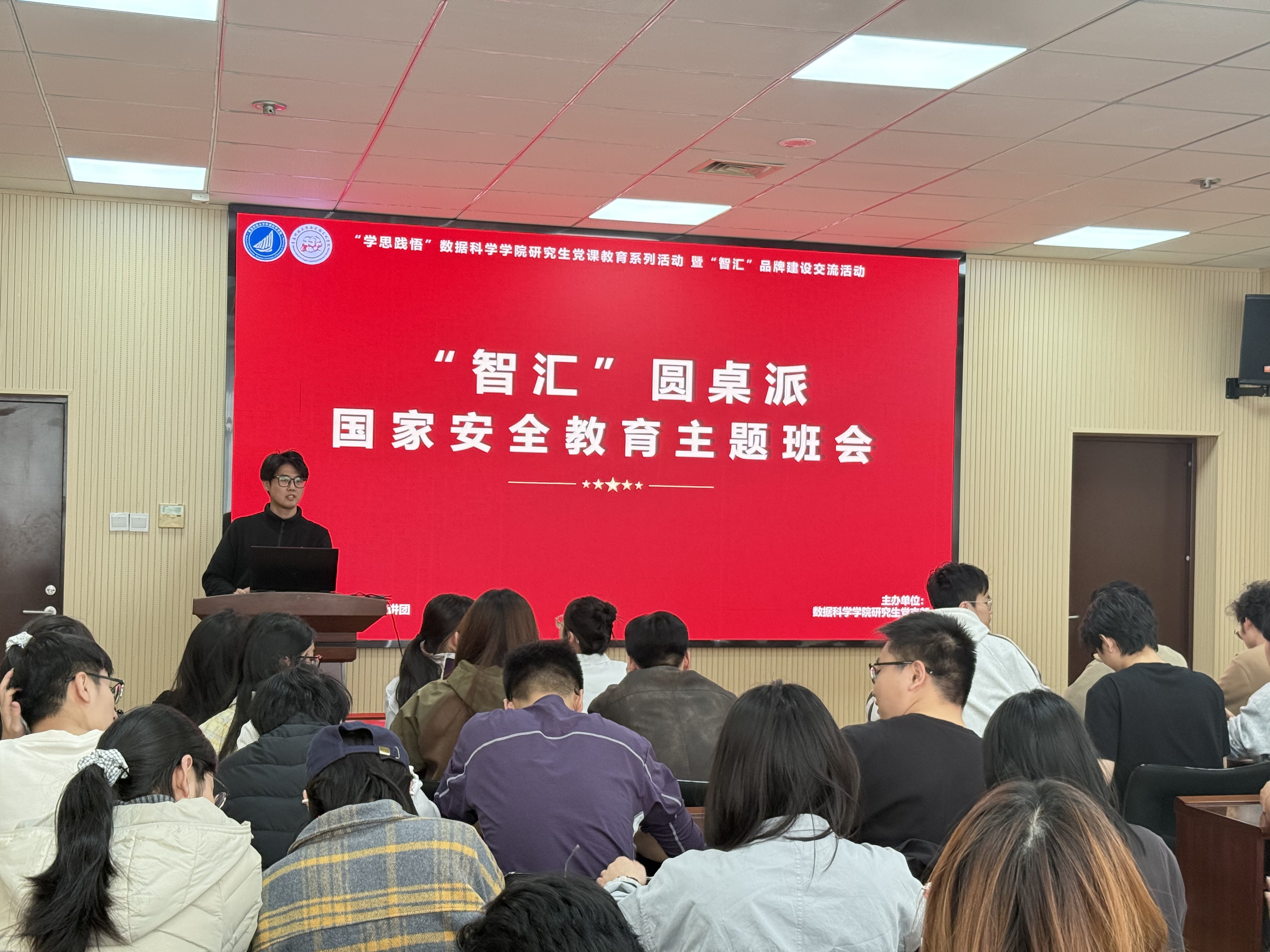 为深入学习贯彻总体国家安全观,引导学生增强国家安全意识,4月20日,数据科学学院在图书馆A4008会议室开展“智汇”圆桌派之国家安全教育主题班会,马克思主义学院“理响”宣讲团主讲,2025级全体研究生参加。