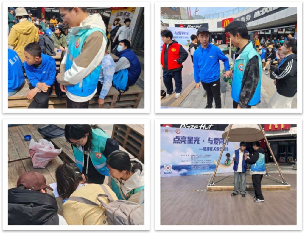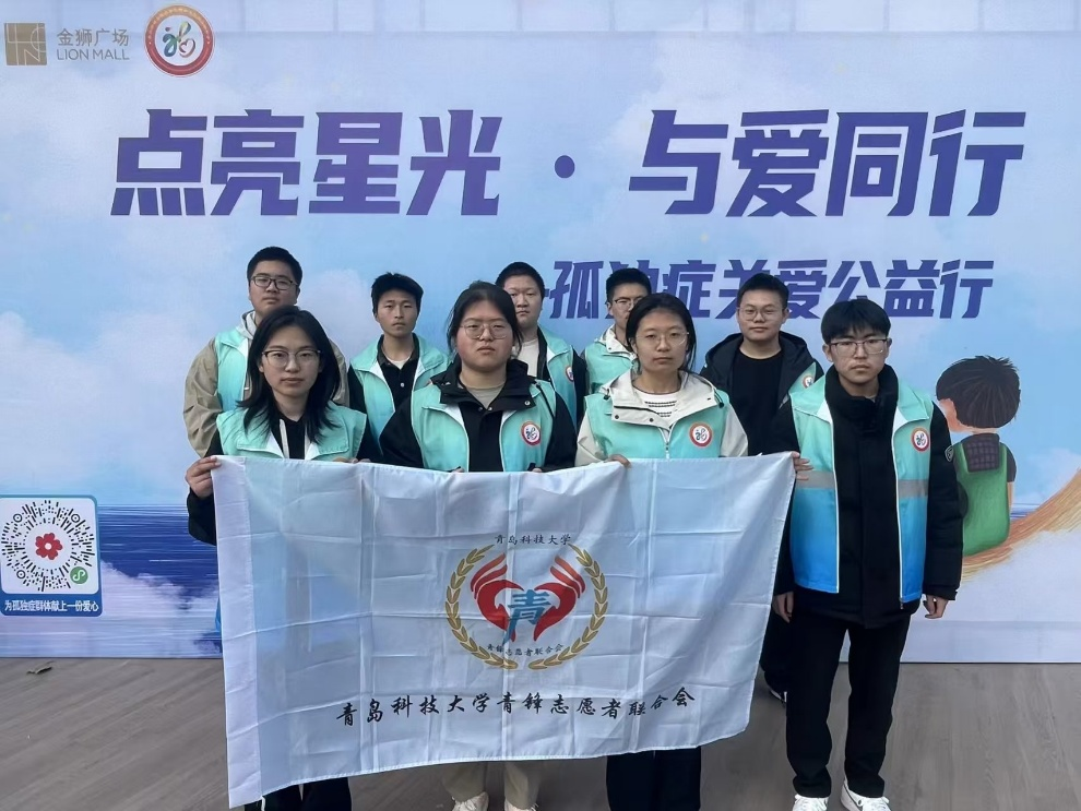 2026年3月29日,青岛科技大学智能制造学院青锋志愿者联合会走进青岛金狮广场南下沉广场,参与329孤独症关爱志愿服务活动,以暖心陪伴与细致服务,为孤独症儿童及家庭传递关爱与温暖,用青春行动点亮星光。