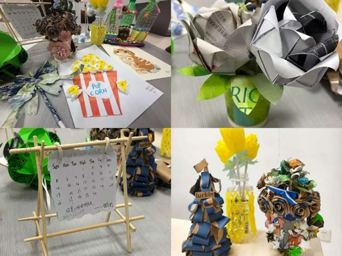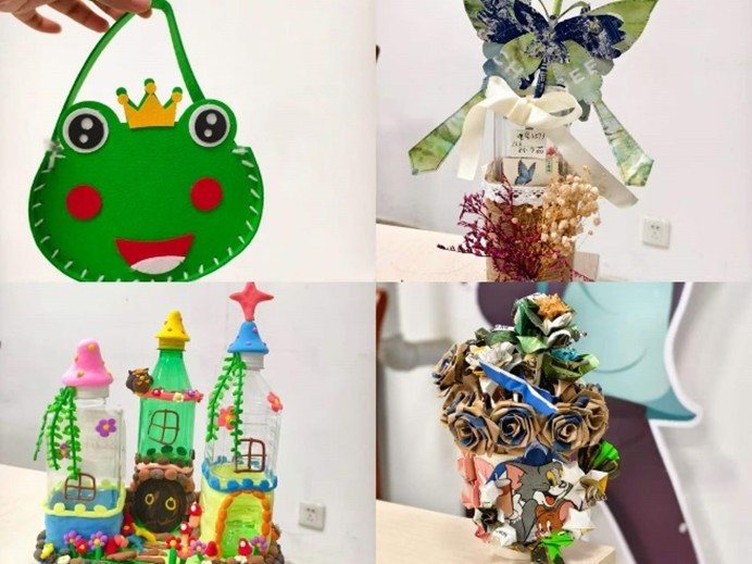 本次活动内容丰富、形式多样,精心设置变废为宝创意手工、环保知识趣味闯关、绿色承诺集体签名三大特色环节。活动现场气氛十分热烈,同学们积极动手创作,将塑料瓶、废旧纸张等生活废品巧妙加工,制作成花盆、收纳摆件等精美作品,践行资源循环利用理念。