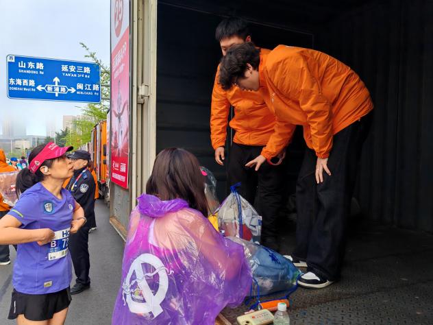 赛事当日凌晨3点,15名志愿者便在学校集结完毕,统一奔赴服务点位。在存取衣车服务岗位上,面对清晨的寒意与巨大的保障压力,志愿者们提前完成物资布置,迅速进入工作状态。晨光初现,志愿者们分工明确、配合默契,认真核对存衣包号码,以“零差错”的高效服务筑牢了赛事保障的坚实防线。
