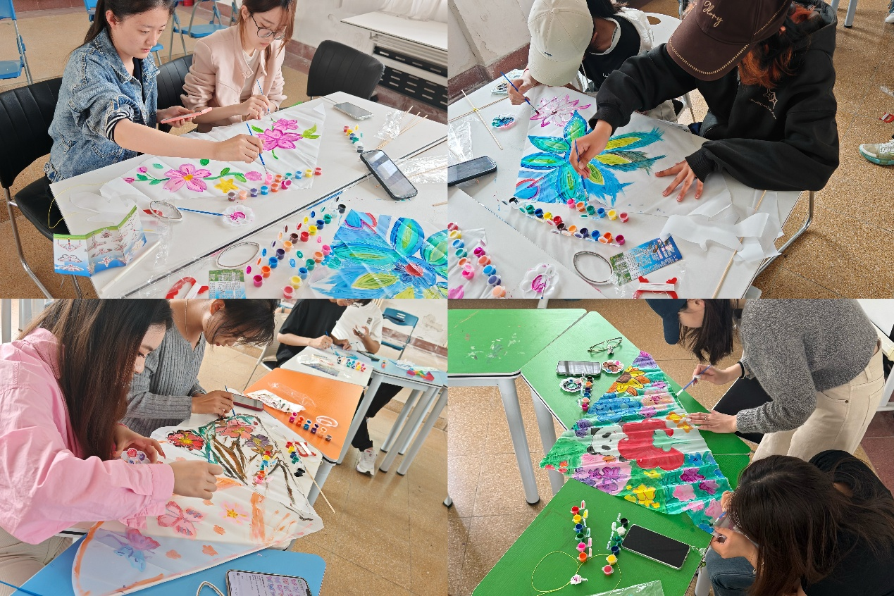 本次活动设三大主题板块,于校园内次第开展,尽显非遗之美。在7号楼“绘非遗纸鸢·承匠心雅韵”手工体验活动雅致启幕,学生两两一组,执笔敷彩,素鸢焕彩,以笔墨勾勒民俗意蕴,以匠心传承非遗根脉,一纸风筝承载千年技艺,一抹色彩尽显青春情怀。