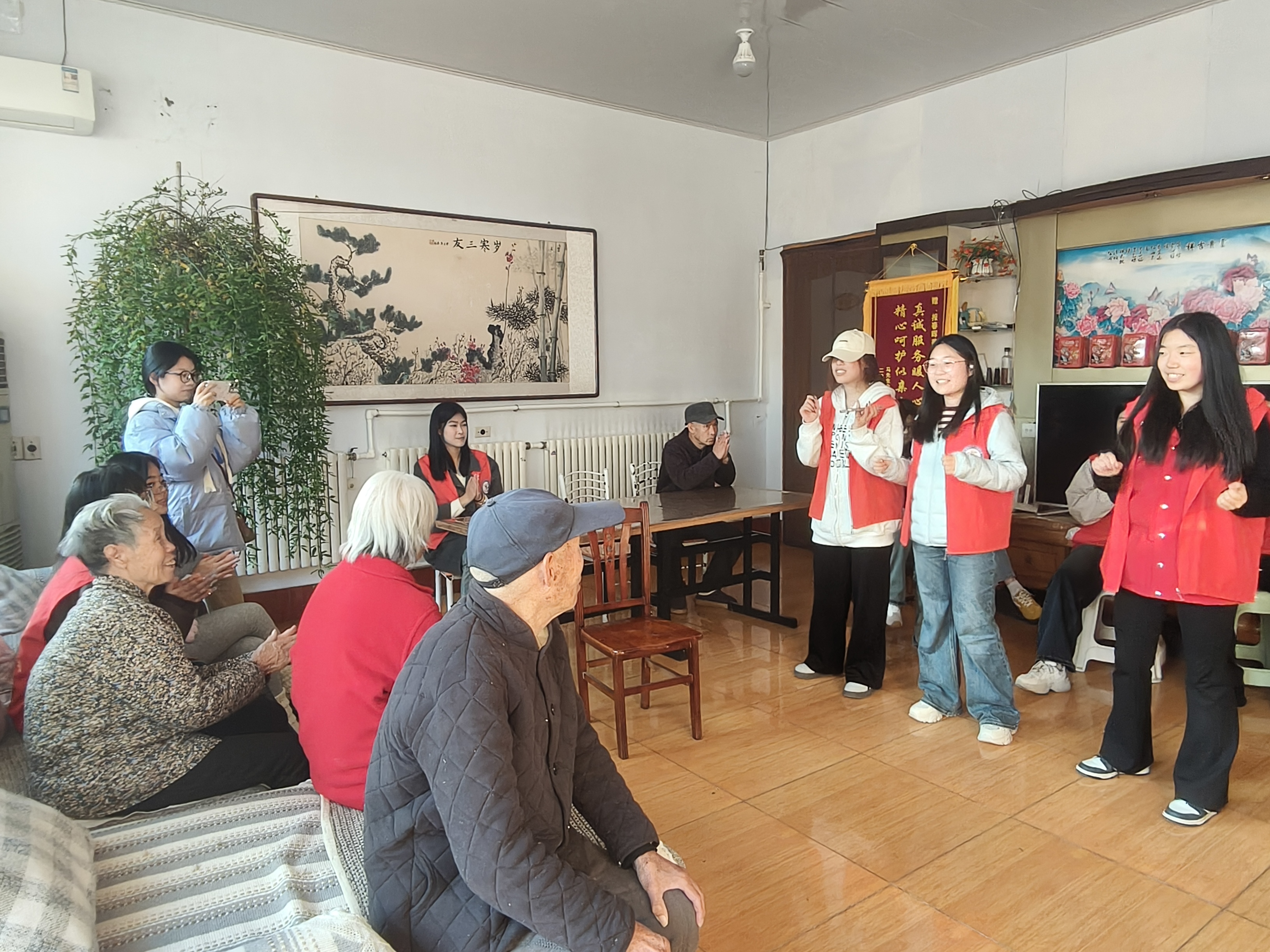 志愿者们前往高密市报春晖养老托老中心,开展敬老爱老服务。大家分工协作,认真完成清扫、消毒等日常工作,为老人营造干净舒适的生活环境。随后,同学们献上《最炫民族风》、《上春山》等耳熟能详的文艺节目,用歌声与欢笑拉近心与心的距离。活动现场温馨融洽,青年学子在服务中深刻体会到“老吾老以及人之老”的传统美德,也让老人们真切感受到来自社会的温暖与陪伴。