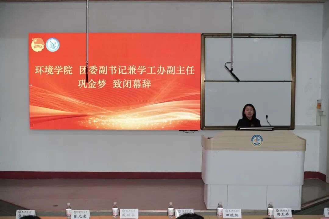 大会在热烈的氛围中顺利闭幕。环境学院团委副书记兼学工办副主任巩金梦致闭幕辞,并对新一届学生会、研究生会提出殷切希望和要求,鼓励同学们扛起责任担当,聚焦主责主业,勇于改革创新,锤炼优良作风,为学校、学院发展与个人成长奋勇前行,为实现中华民族伟大复兴添砖加瓦。