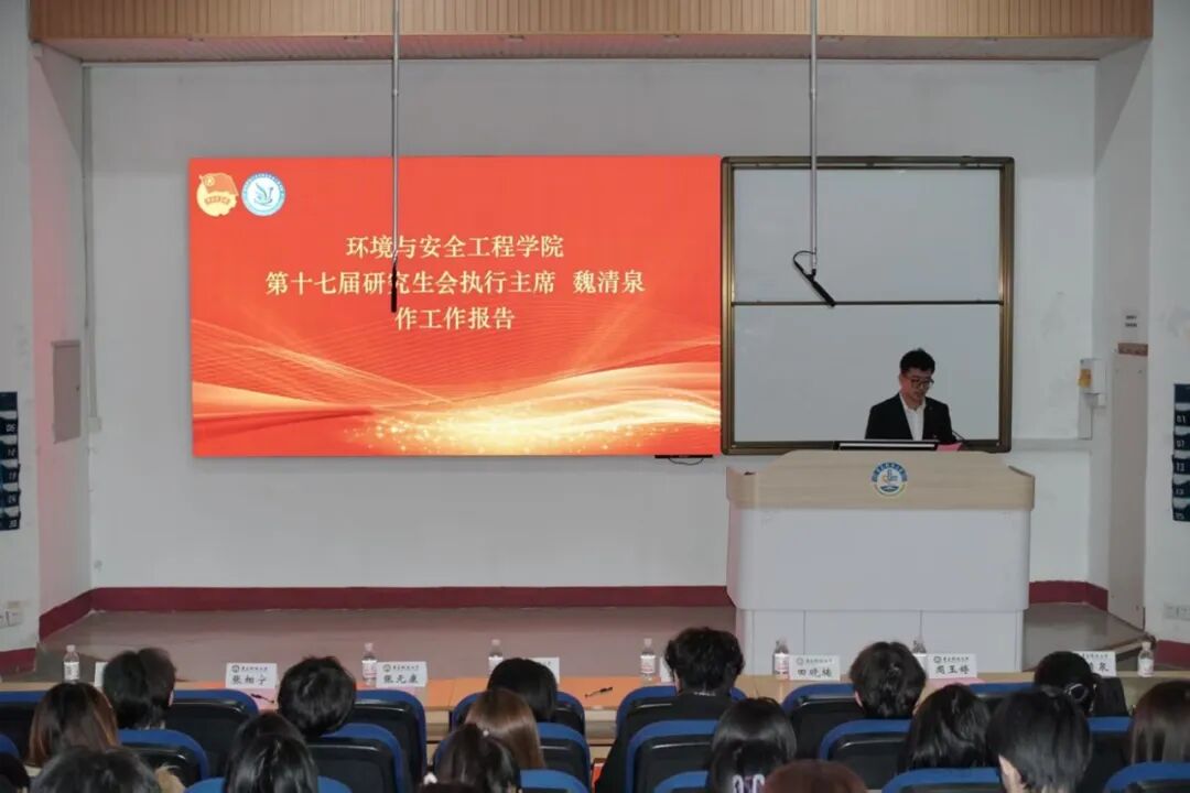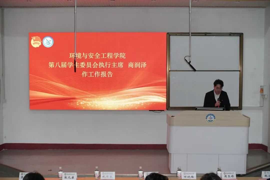商润泽和魏清泉分别代表第八届学生委员会和第十七届研究生委员会做工作报告。他们对过去一年学生组织的工作进行总结,介绍了学生工作取得的创新亮点和显著成就,鼓励新一届学生委员会和研究生委员会总结过去一年的经验教训,不断创新发展,助力环境学院团学工作更上一层楼。