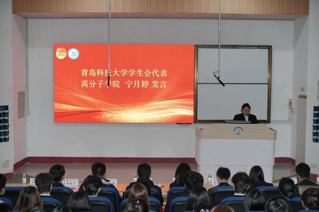 随后,工作人员宣读兄弟学院学生会、研究生贺信。青岛科技大学学生会代表宁月婷、兄弟学院学生会代表王乐松致贺词。