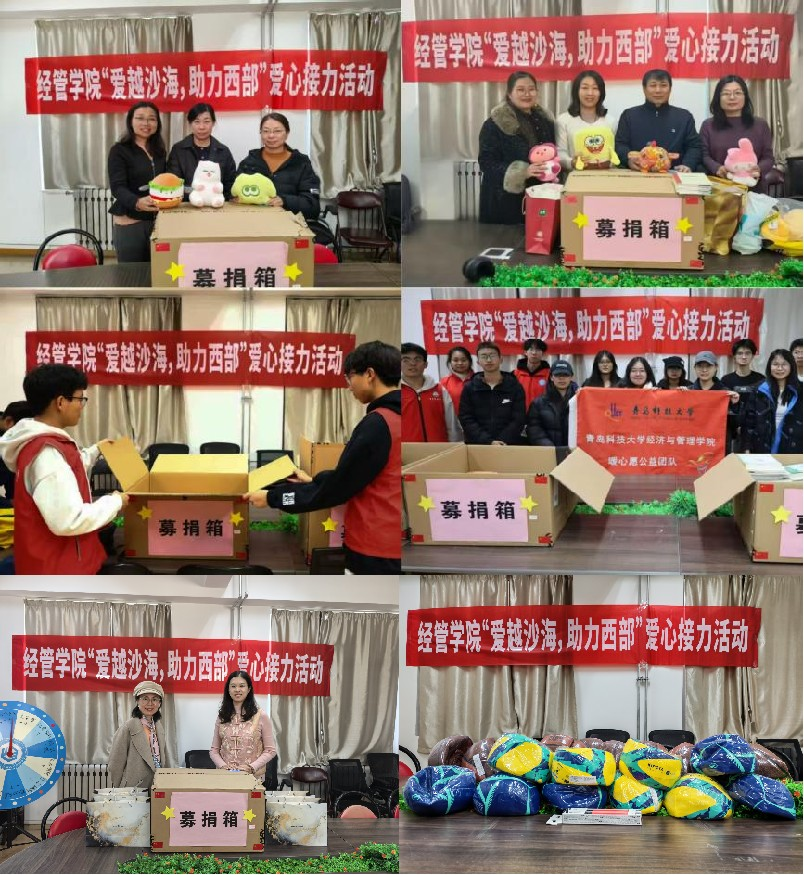 自校团委“爱越沙海,助力西部”爱心接力活动启动以来,经管学院团委积极响应号召,面向全院师生广泛深入动员落实,学生会、研究生会面向广大青年学生率先呼吁组织,教工党支部、卓越团支部、“暖心愿”协会陆续主动加入,在“12·5”国际志愿者日到来之际,经管学院师生以爱心捐赠书写奉献担当,让温暖跨越沙海,让爱心落地生根。