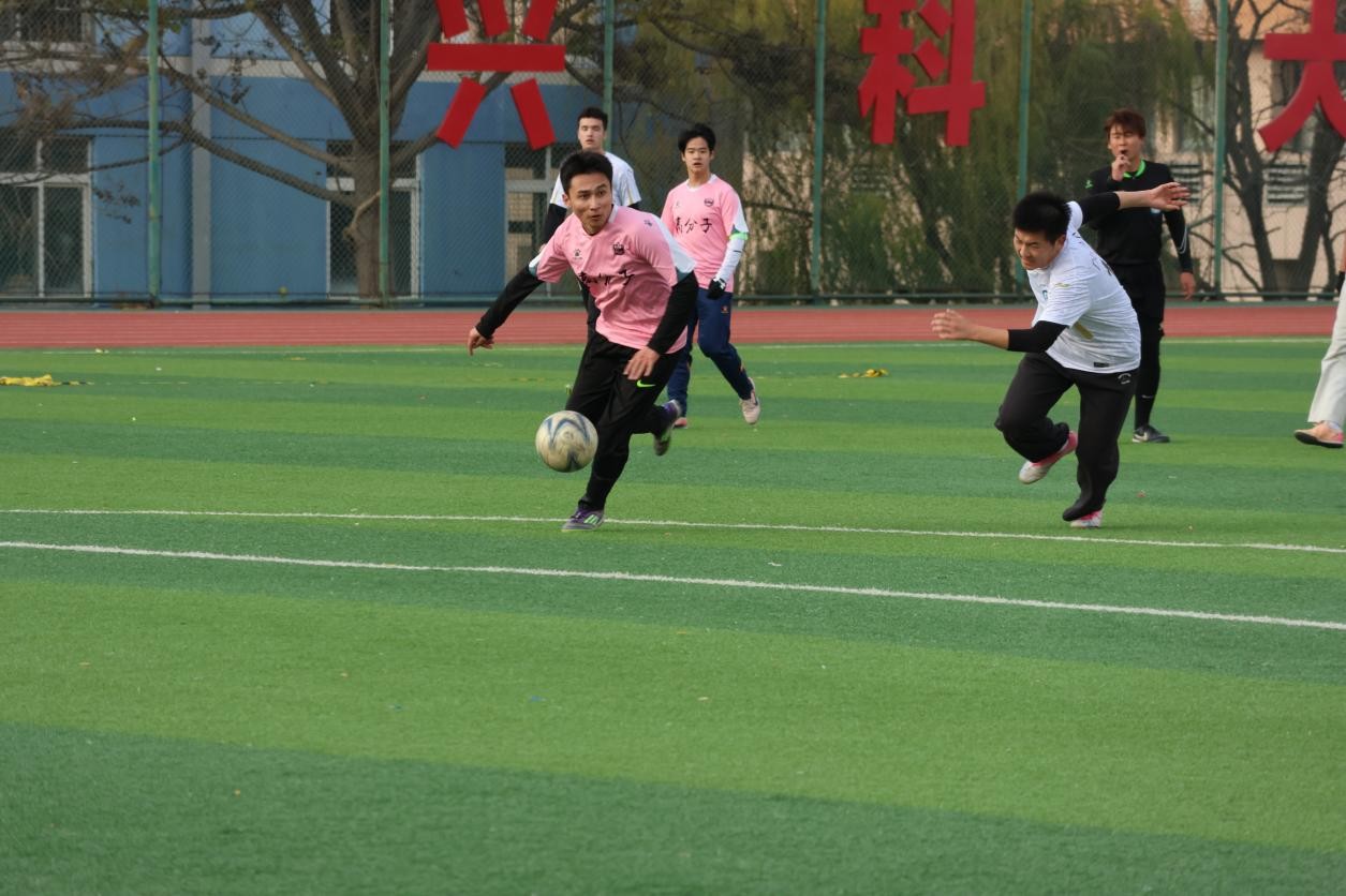 比赛伊始,双方便迅速进入竞技状态,高分子学院的球员更是斗志昂扬、气势如虹!他们凭借积极的穿插跑动与默契的传切配合,持续向环境学院防线施压——每一脚精准传递都彰显着团队扎实的战术素养,每一次犀利突破都凝聚着全员必胜的决心。面对对手的顽强固守,高分子队员始终沉着冷静,中前场球员灵活换位、层层组织攻势,后防线则稳扎稳打、协同补位,屡次将对手的反击化于无形,牢牢掌控着比赛节奏。