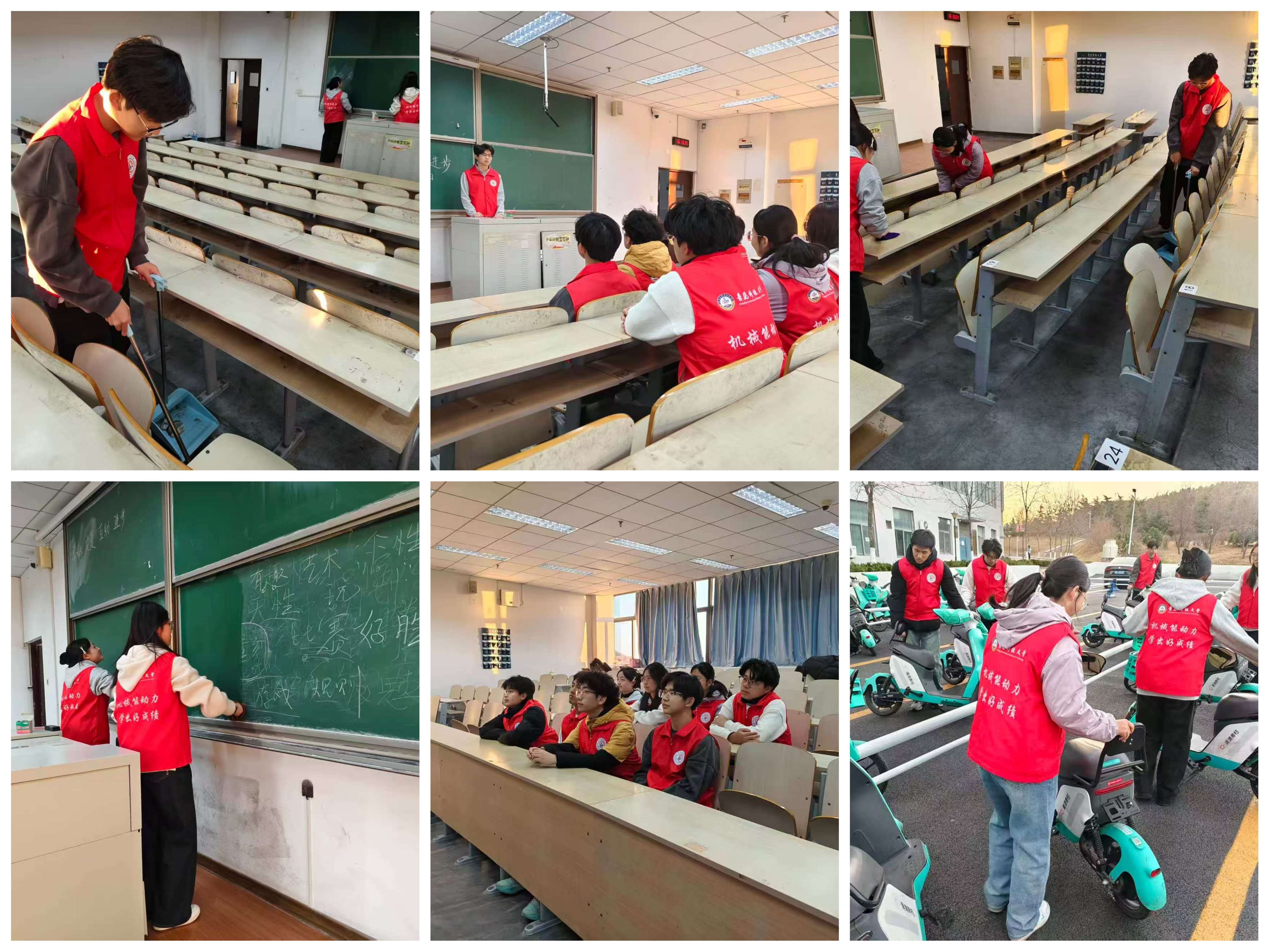 在校园服务方面,志愿者们走进明德楼开展“机电先锋行”教室清洁专项行动,分工协作整理教室环境、规整公共设施,优化教学秩序,以点滴行动优化教学秩序,进一步营造文明整洁的学习氛围。