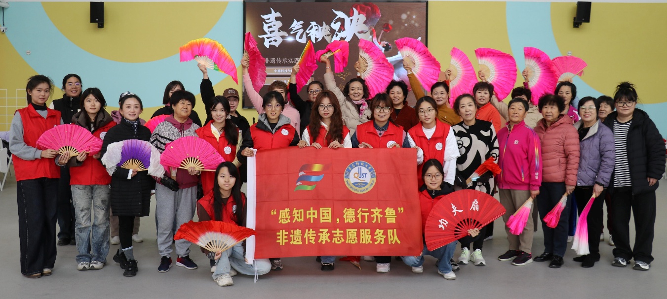 学院团委“感知中国,德行齐鲁”非遗传承志愿服务队走进中韩街道瑶海路社区,开展“舞韵秧歌 情暖社区”非遗秧歌进社区实践活动。活动以“秧歌基础步法与节奏感知”为核心内容,队员们详细讲解了握扇、脚位、动律等经典动作要领。在教学环节,志愿者通过动态示范与分解教学相结合的方式,引导社区居民伴随民乐节奏进行现场演练。活动现场互动频繁,气氛热烈融洽。