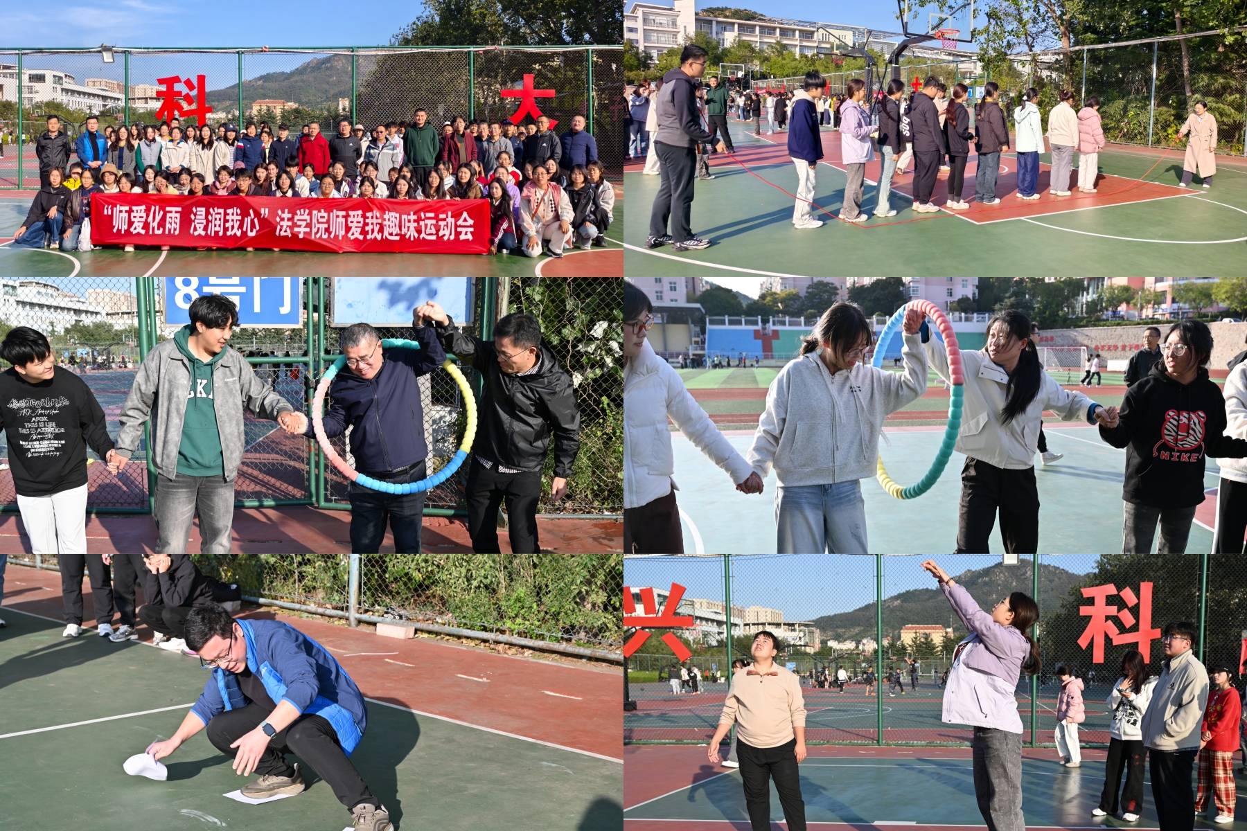 运动聚欢愉,师生共此时。学院团委与学院工会共同举办了“师爱化雨,浸润我心”师生趣味运动会。在比赛中,各支由老师和学生组成的参赛队伍,在“筷子夹球”“欢乐大摇绳”“呼啦圈传递”等趣味项目中默契配合、团结协作,彼此加油助威,赛场气氛热烈而温馨。以运动为纽带,充分展现了法学院师生奋发向上的精神风采,让师生情谊在欢声笑语中进一步升华。