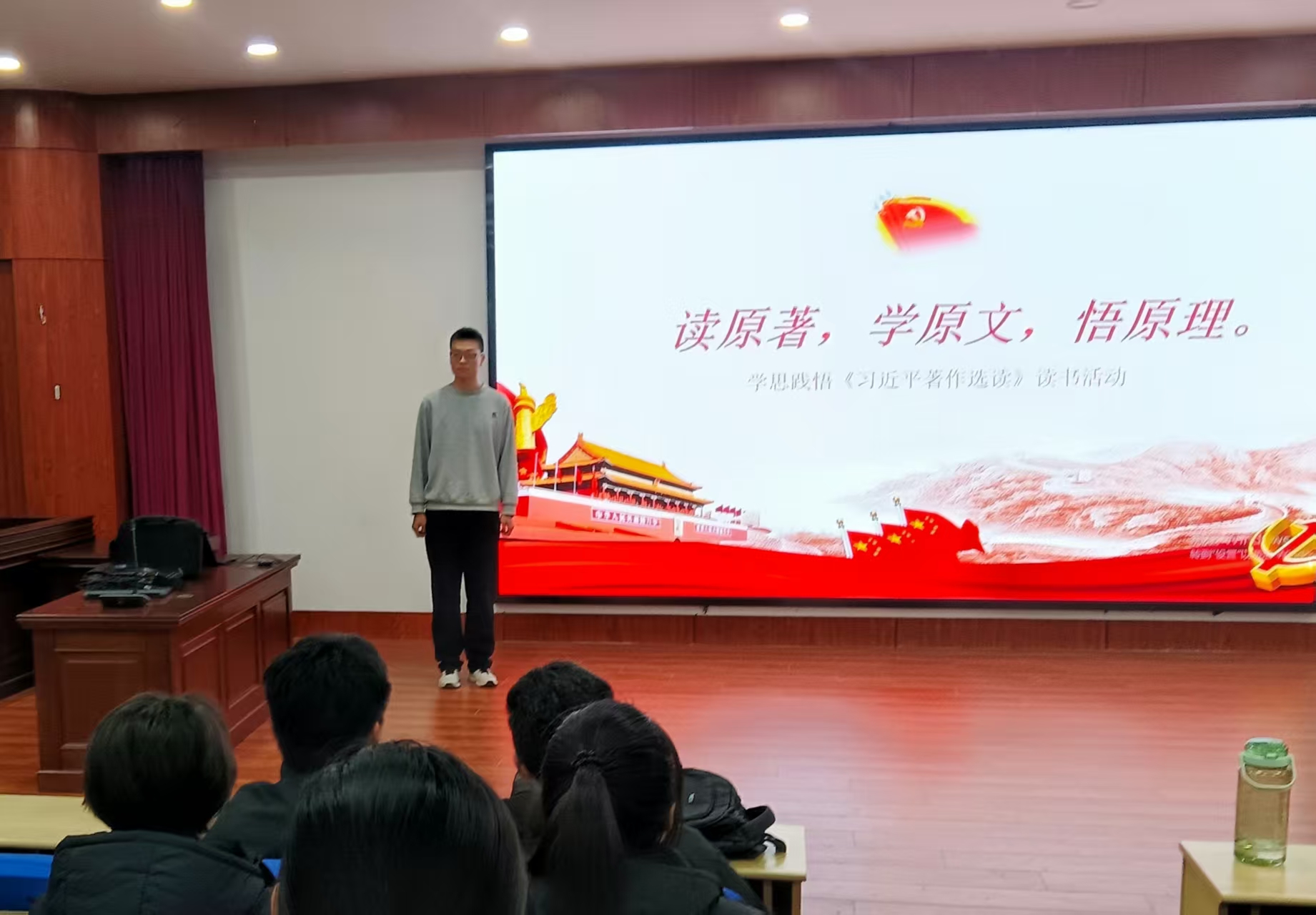 为深入学习贯彻习近平新时代中国特色社会主义思想,引导青年学生从经典著作中汲取智慧力量,法学院团委于2025年11月11日在模拟法庭举办《习近平著作选读》专题读书会。本次活动共吸引30余名青年学生参与,旨在通过集体学习、分享感悟的形式,深化对党的创新理论的理解与认同。