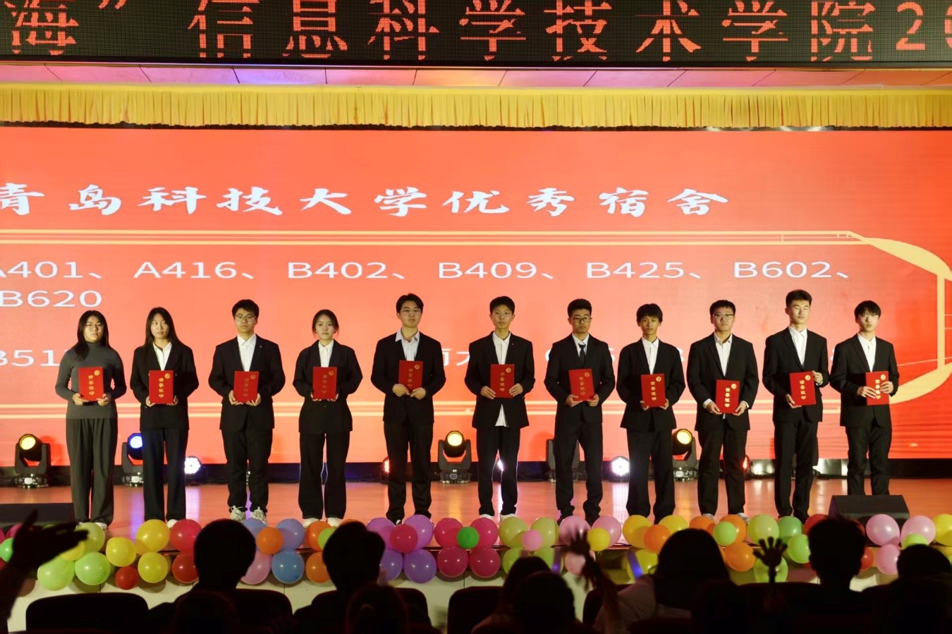 晚会中篇为信息学院2025年表彰大会,大会表彰了2024-2025学年本科生、研究生国家奖学金和时瑞金融奖学金获得者,青岛科技大学标杆宿舍、优秀舍长和优秀宿舍。激励学院广大学子在学业中勤耕不辍,在集体生活中互助共进,持续传递积极向上的“榜样力量”。