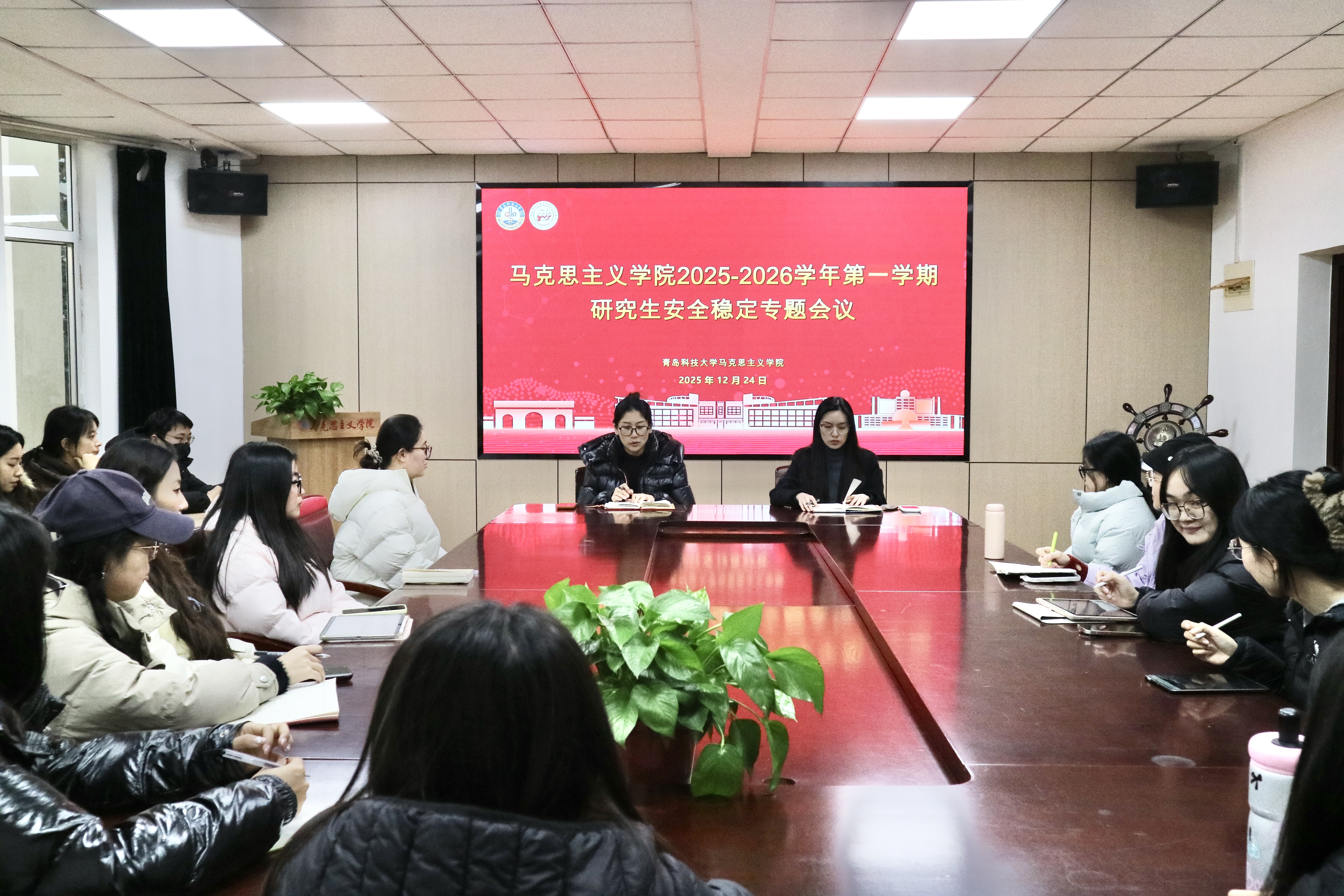 12月24日,马克思主义学院于2010会议室召开2025-2026学年第一学期研究生安全稳定专题会议。学院学工办主任郭佩佩、辅导员陈晨出席会议,学院各年级班长、团支书及各宿舍舍长参加会议。