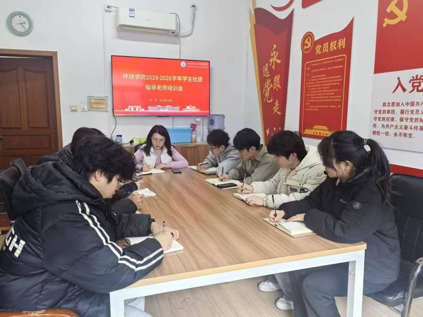 12月24日,环境学院召开2025-2026学年学生社团建设培训会,安全行动社、后天环保协会、阳光心理协会、青岛科技大学青年志愿者协会环境学院分会的指导老师和社团负责人参会,学院负责社团工作团干部周玉婷主持会议。