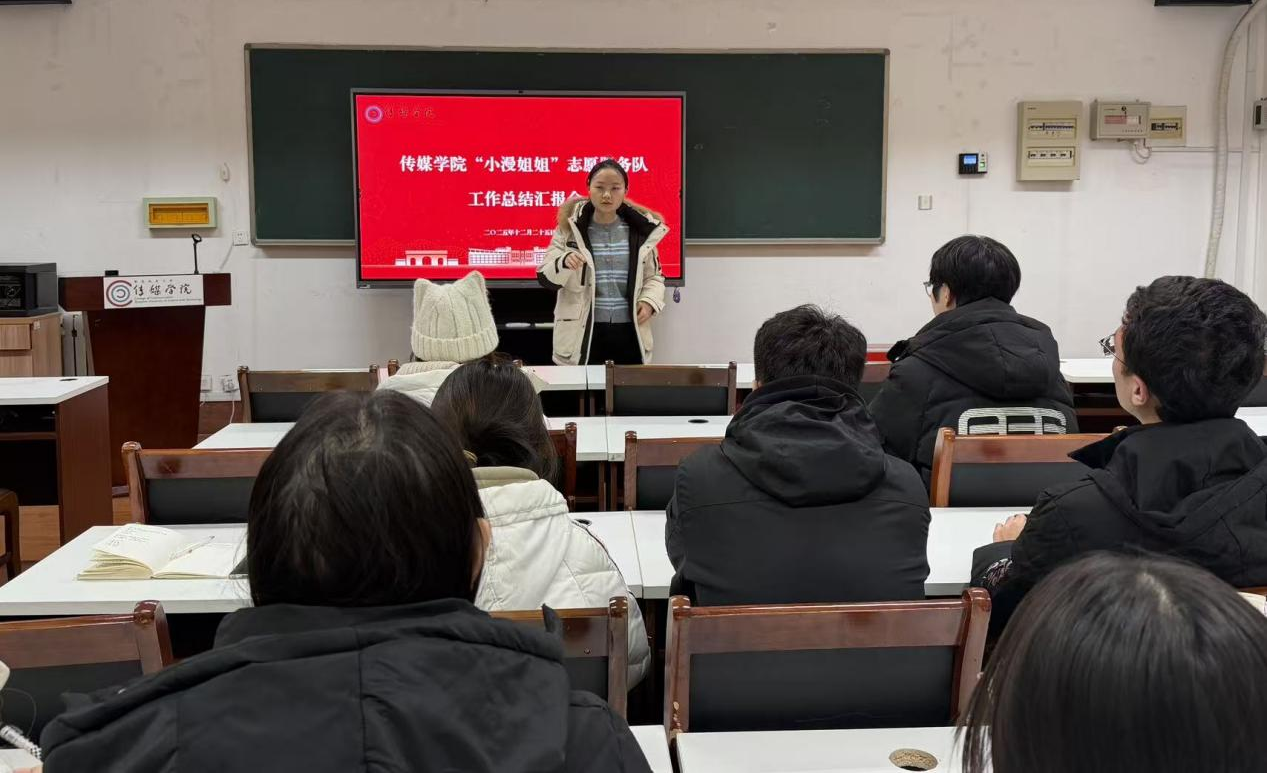 近日,传媒学院团委“小漫姐姐”志愿服务团队年度总结会在学院310举行,全体志愿者齐聚一堂,复盘过往工作,共话未来发展。