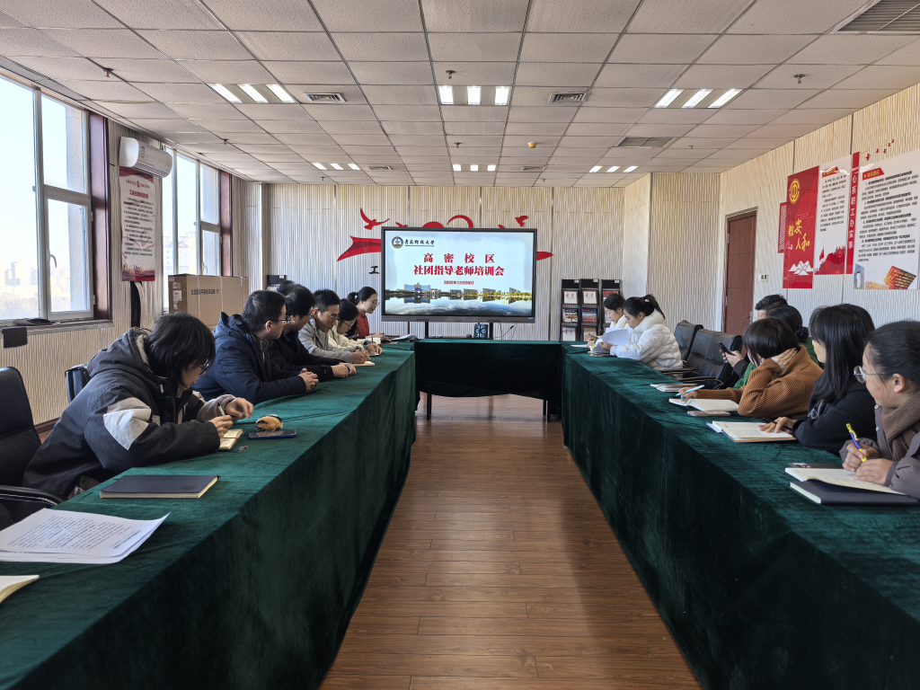 近日,高密校区团委在图书馆912会议室组织召开学生社团建设培训会。高密校区团委副书记张心凤主持会议,校区各学生社团指导教师参加会议。