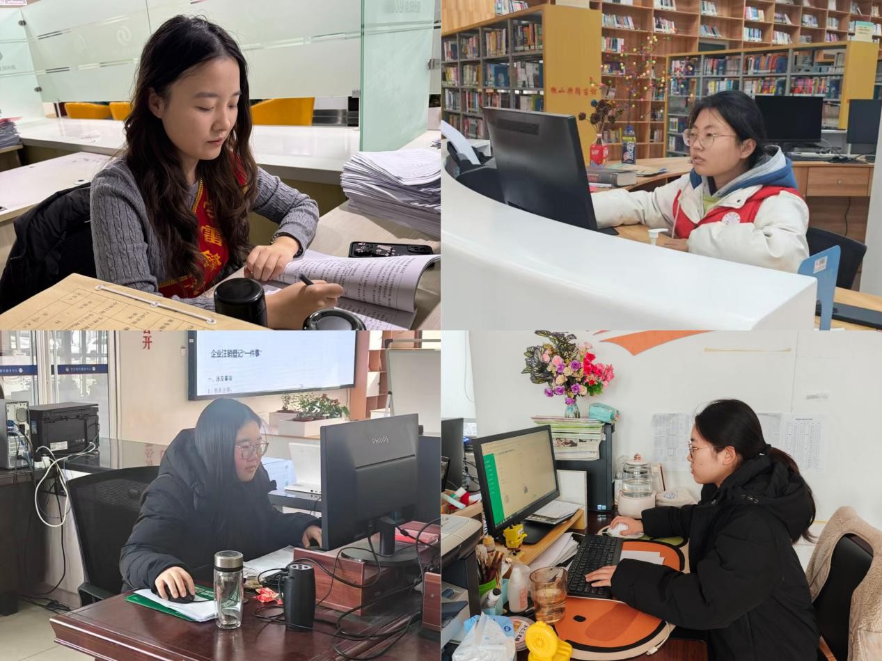 以青春之我,建基层之功。学院广大团员青年积极响应 “青鸟计划” 号召,主动奔赴全国各地基层一线岗位,在政务服务、基层治理等领域发光发热。在临沂市兰山区李官镇、日照市东港区陈疃镇、广西玉林市容县等地政务服务大厅,青年学子扎根服务窗口,协助开展群众分流引导、办事表格填写、业务材料整理等工作,用心用情化解群众办事难题,在民生服务一线践行青年初心;在福建省莆田市仙游县盖尾镇派出所户籍窗口,志愿者全程协助群众办理户籍业务、完成电子信息填报、证件拍摄等工作,以细致服务提升群众办事体验;在重庆市开州区,交通志愿者坚守路面一线,协助维护春运交通秩序,为平安春运贡献青春力量。