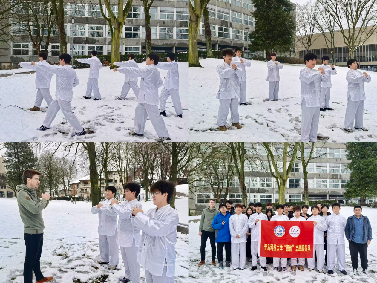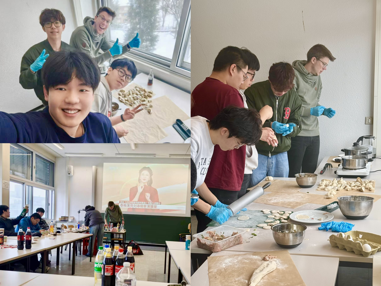 与此同时,冬令营以非遗传播与年俗体验双向赋能,推动中华文化在海外的生动传播,搭建中德情感共鸣的桥梁。同学们以中华非遗螳螂拳为媒介、丙午马年春节为纽带,在帕德博恩掀起中华文化传播热潮。他们采用“分解动作教学+文化内涵阐释”的方式,向德国青年细致拆解螳螂拳招式要领,讲解“来、叫、顺、送”的战术精髓与“提、拿、封、闭”的控制要诀,深入解读其“刚柔并济、内外兼修”的哲学智慧及“止戈为武”的文化内核,让德国友人领略中华非遗的独特魅力。恰逢丙午马年春节,一场精彩的螳螂拳表演将“以和为贵”的中国智慧转化为可触可感的视觉符号,赢得德国师生的阵阵掌声。在包饺子特色活动中,同学们携手擀面皮、包馅料,在沉浸式的春节年俗体验中,传递“团圆和美”的东方文化内涵,深化彼此的情感联结,让春节成为中德跨文化理解的重要“情感纽带”。