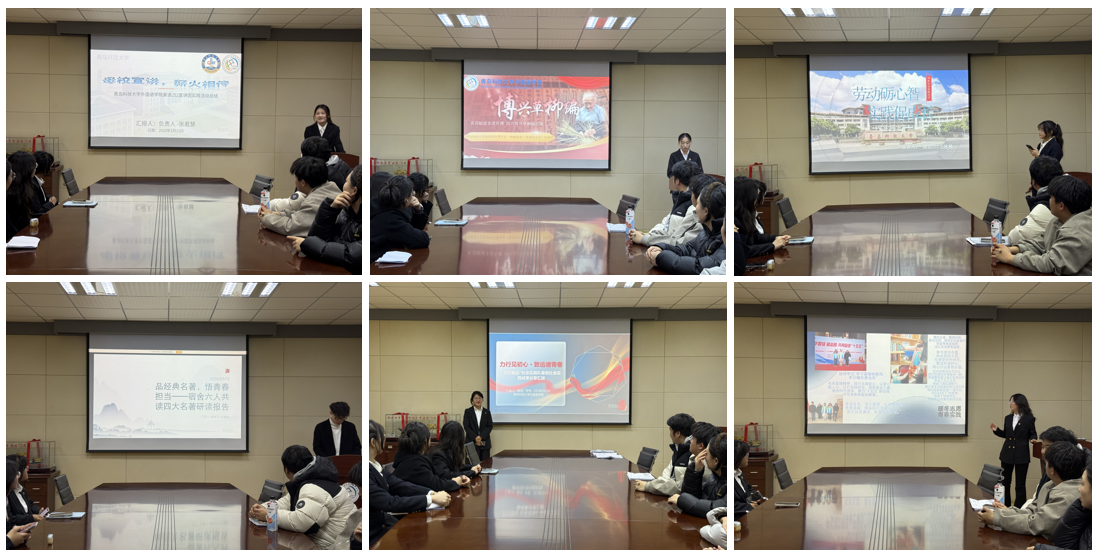 会上,实践团围绕“专业赋能基层”“文化出海路径”“乡村振兴外语服务”等主题深入交流,现场气氛热烈。来自各实践团的汇报人结合鲜活案例,分享将语言能力转化为服务效能的创新探索。青岛科技大学赴滨州市博兴县“柳编新韵·非遗助乡兴”实践团以外语赋能,助非遗出海;“力行致远”实践团则以“北斗式”分布扎根齐鲁大地,以实践进行担当,守护民生温度,传播非遗文化。暖冬志愿青春实践团队则走进社区,他们以雷锋精神为指引,以行立德,用温度传递青年力量。种植园实践团队则深入家乡种植园大棚,以跨学科视角观察现代农业发展,用行动扎根乡土,展现青春担当。部分实践团坚守“薪火相传,以讲育人”的信念,返回高中母校开展经验分享,在“传帮带”中彰显高校学子的引领作用;还有团队以“四大名著”共读为载体,引领青少年在品读经典中坚定文化自信,提升人文素养。
