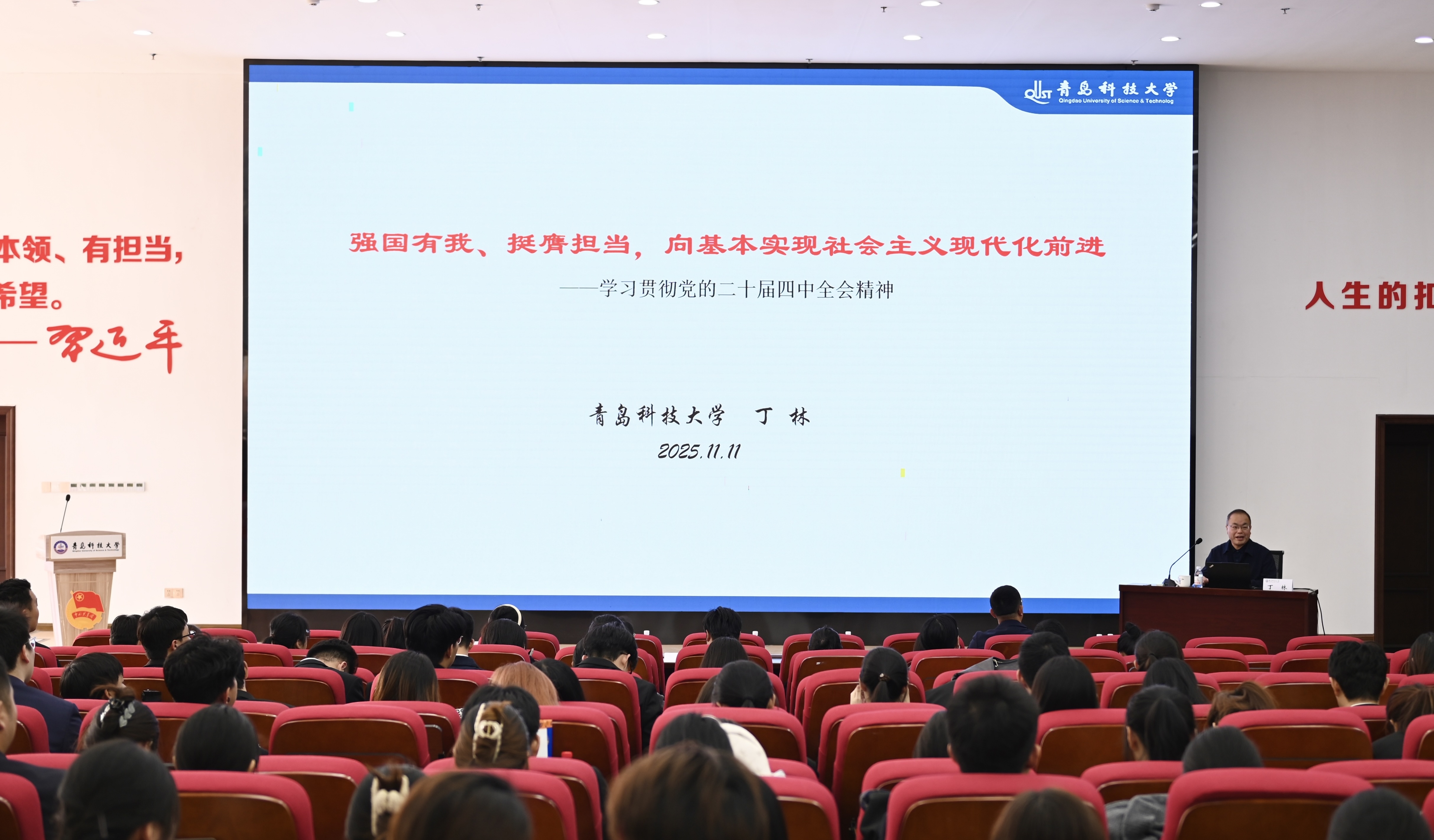 11月11日下午,学校第18期(2025-2026学年)“青年马克思主义者培养工程”培训班开班仪式在崂山校区团学报告厅举行。党委常委、副校长丁林,党委常委、宣传部部长张洪坤,党委常委、组织部部长朱敬义出席仪式。
