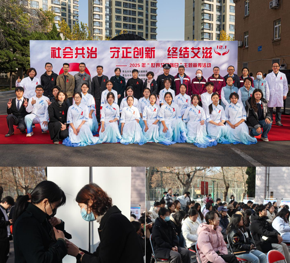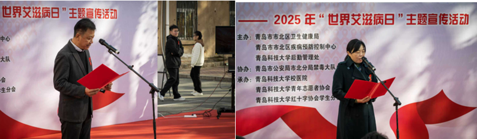 2025年12月1日,是第38个“世界艾滋病日”。为了提高公众对艾滋病防治的认知,倡导科学防治和社会关爱,青岛市市北区卫生健康局、市北区疾病预防控制中心、青岛科技大学后勤管理处联合主办了以“共同抗艾,守护生命”为主题的宣传教育活动。活动得到了青岛市公安局市北分局禁毒大队的大力支持,青岛科技大学校医院、校青年志愿者协会及红十字协会学生分会积极参与,吸引了来自各学院的100余名师生参与。此次活动的圆满完成,不仅增强了公众对艾滋病防控的认识,也展示了社会各界共同参与艾滋病防治的决心和行动力。