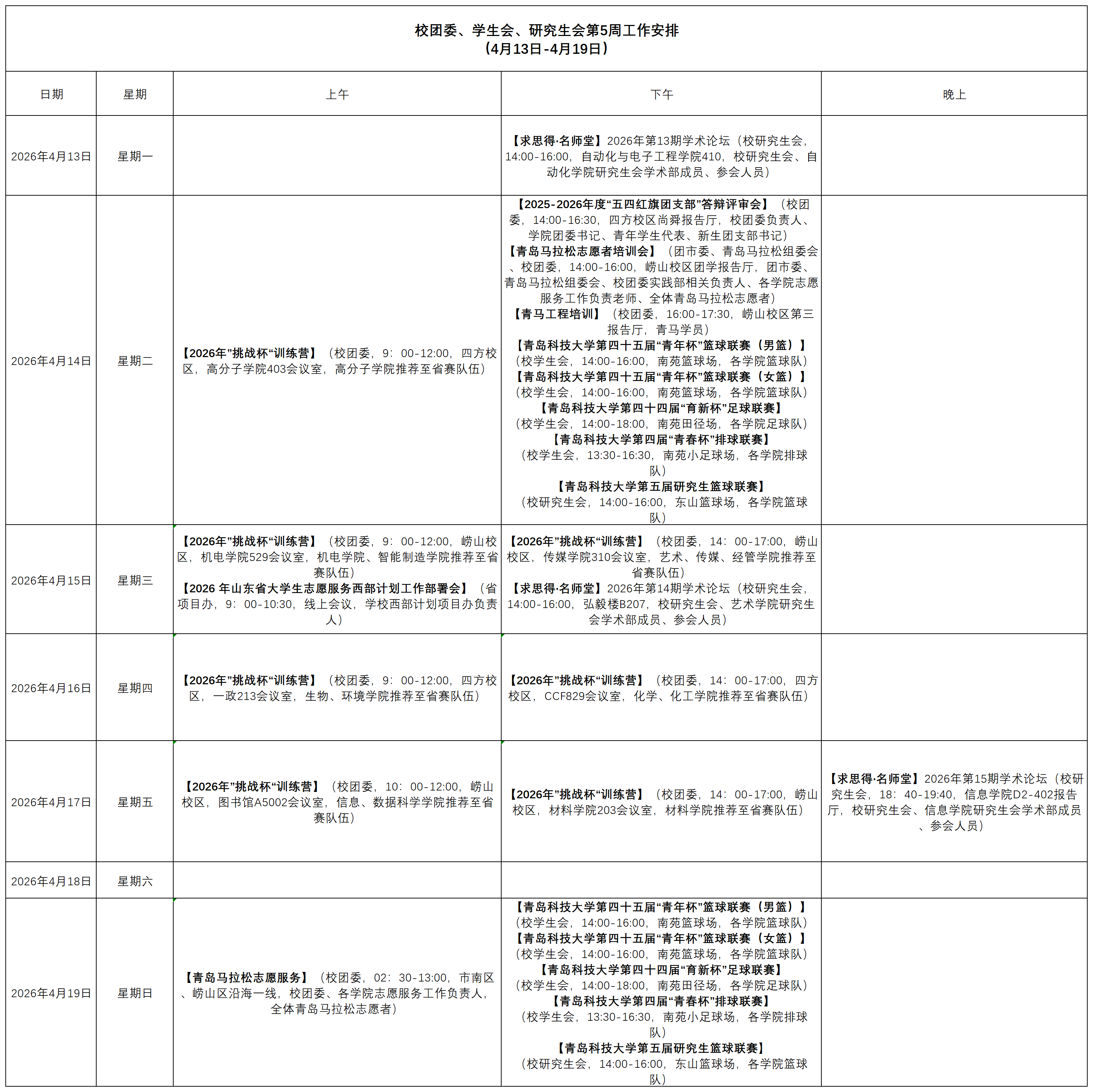 作者:校团委、学生会、研究生会 审核: 来源: 校团委、学生会、研究生会 编辑:王丹 时间: 2026-04-14 点击数: