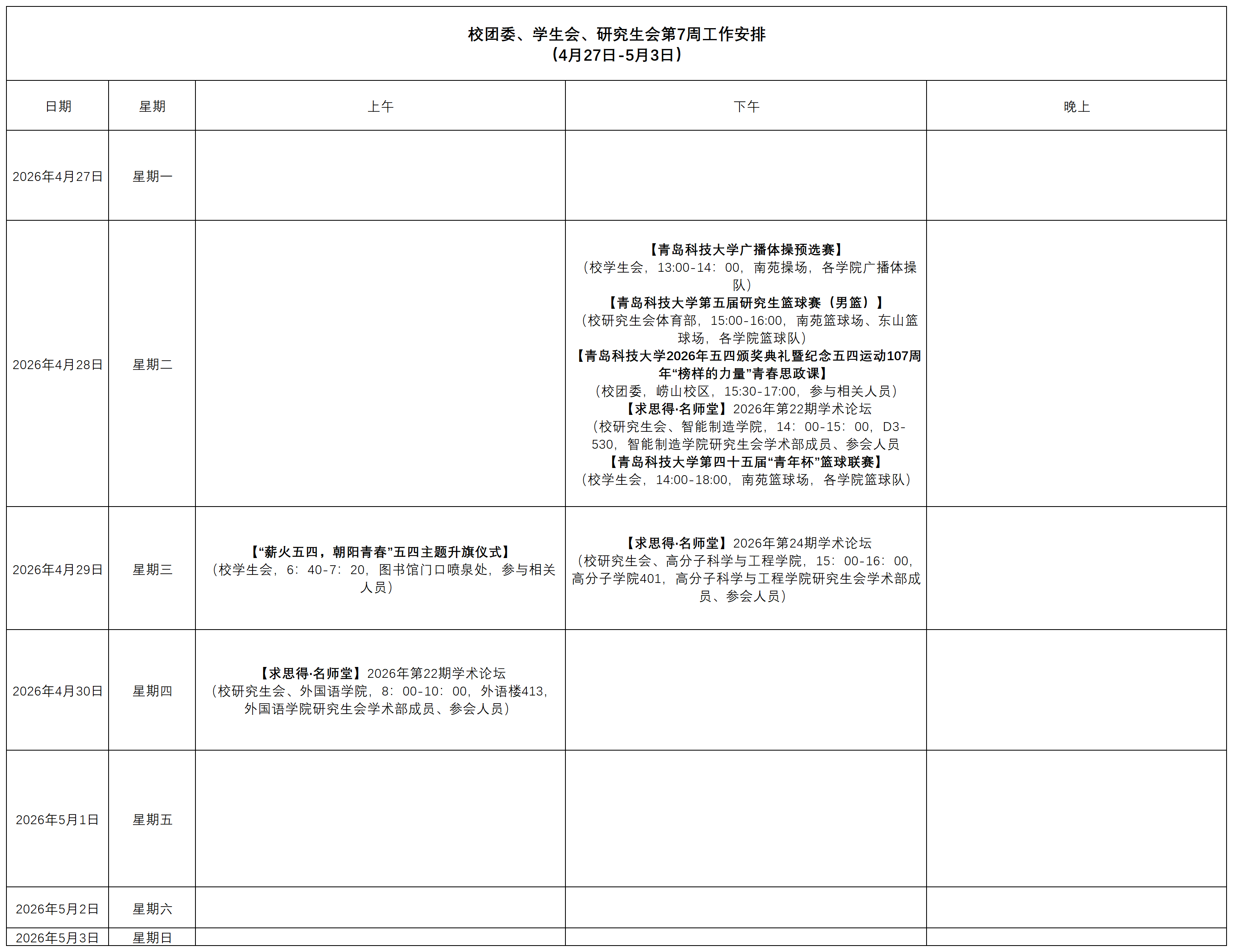 作者:校团委、学生会、研究生会 审核: 来源: 校团委、学生会、研究生会 编辑:王丹 时间: 2026-04-27 点击数: