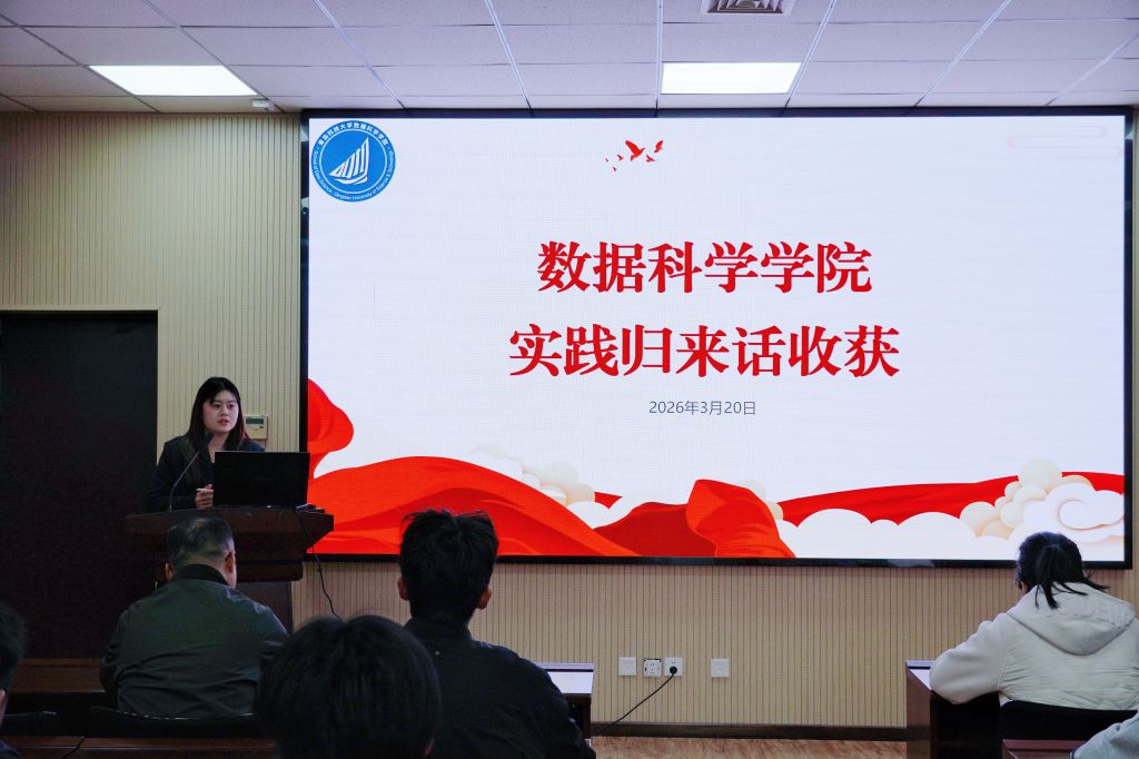 为激励同学们分享社会实践经历、交流成长感悟、凝聚奋进力量,3月20日,数据科学学院团委于图书馆A区4008报告厅成功举办2026年寒假“实践归来话收获”交流分享会,此次分享会由数据科学学院辅导员卞文馨主持,辅导员李冬参会。