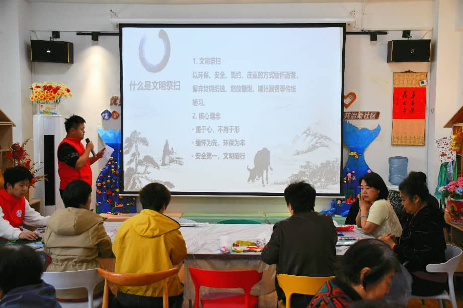 活动现场,志愿者们摒弃照本宣科,以拉家常的方式,从居民关心的环境问题切入,耐心讲解焚烧纸钱、燃放鞭炮的隐患,将“重于心,不拘于形”的文明理念潜移默化地传递给居民,引导大家摒弃铺张攀比的陋习,让清明追思回归心意本真。