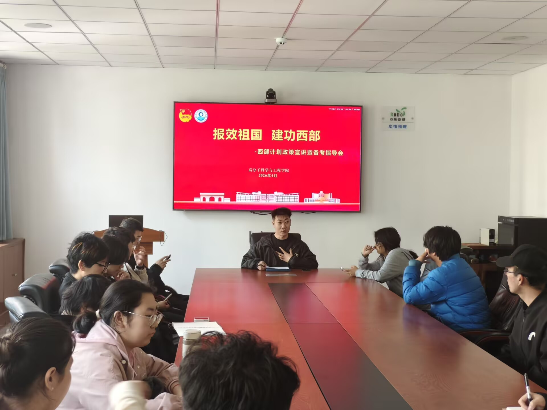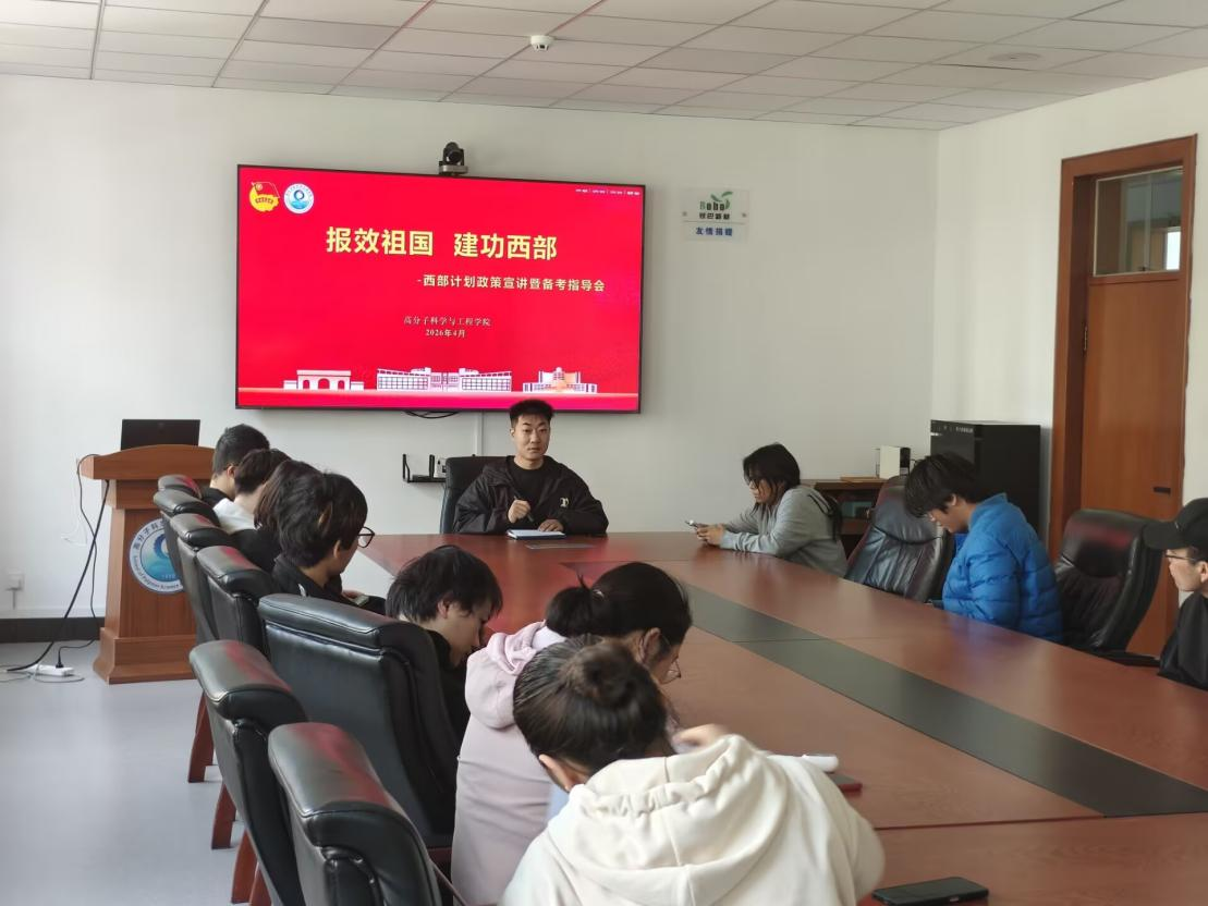 为进一步做好西部计划宣传动员与服务保障工作,精准助力报名学子明晰政策、高效备考,为同学们投身西部、服务基层注入信心与动力。4月22日,高分子学院召开2026年西部计划政策宣讲暨备考指导会。本次宣讲会由高分子学院西部计划负责老师王亚宁主持,学院有意向参与西部计划的20名同学参会。会议围绕政策解读、备考指导、经验分享、互动交流四个环节展开。