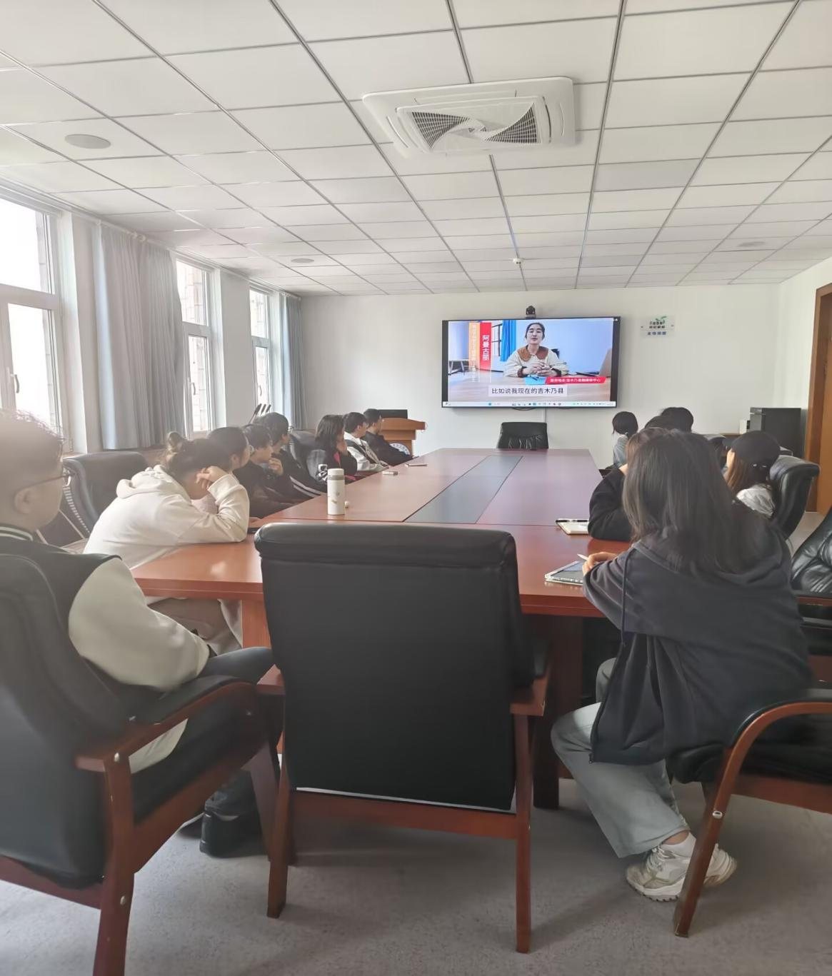 会议还组织观看了往届成功入选西部计划优秀志愿者的经验分享视频。学长学姐结合自身在西部基层的工作日常、服务经历、成长感悟与收获体会。她们用朴实的语言和真挚的情感,展现了西部基层工作的真实图景,并鼓励学弟学妹们勇敢迈出服务西部的第一步,在实践中书写无悔青春。
