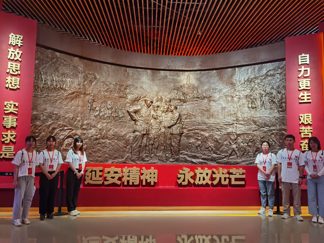 7月24日,实践团成员前往参观延安革命纪念馆,感悟延安精神,正确把握延安地区在中国革命斗争中的关键作用。延安纪念馆是一座陈列展出革命文物的纪念馆,它主要宣传1935年10月至1948年3月近十三年间,党中央在延安和陕甘宁边区领导中国革命的光辉历史。通过参观延安革命纪念馆,团队成员真切感受到中国共产党的艰苦奋斗和自力更生的精神。南湖汤汤入画舫,百年悠悠谱华章。在不经意翻开的历史画卷中,实践团成员深刻领略到“青年兴则国家兴,青年强则国家强”,并表示吾辈青年定会担负起自身的职责使命,在实践中郑重许下誓言:“请党放心,强国有我。”