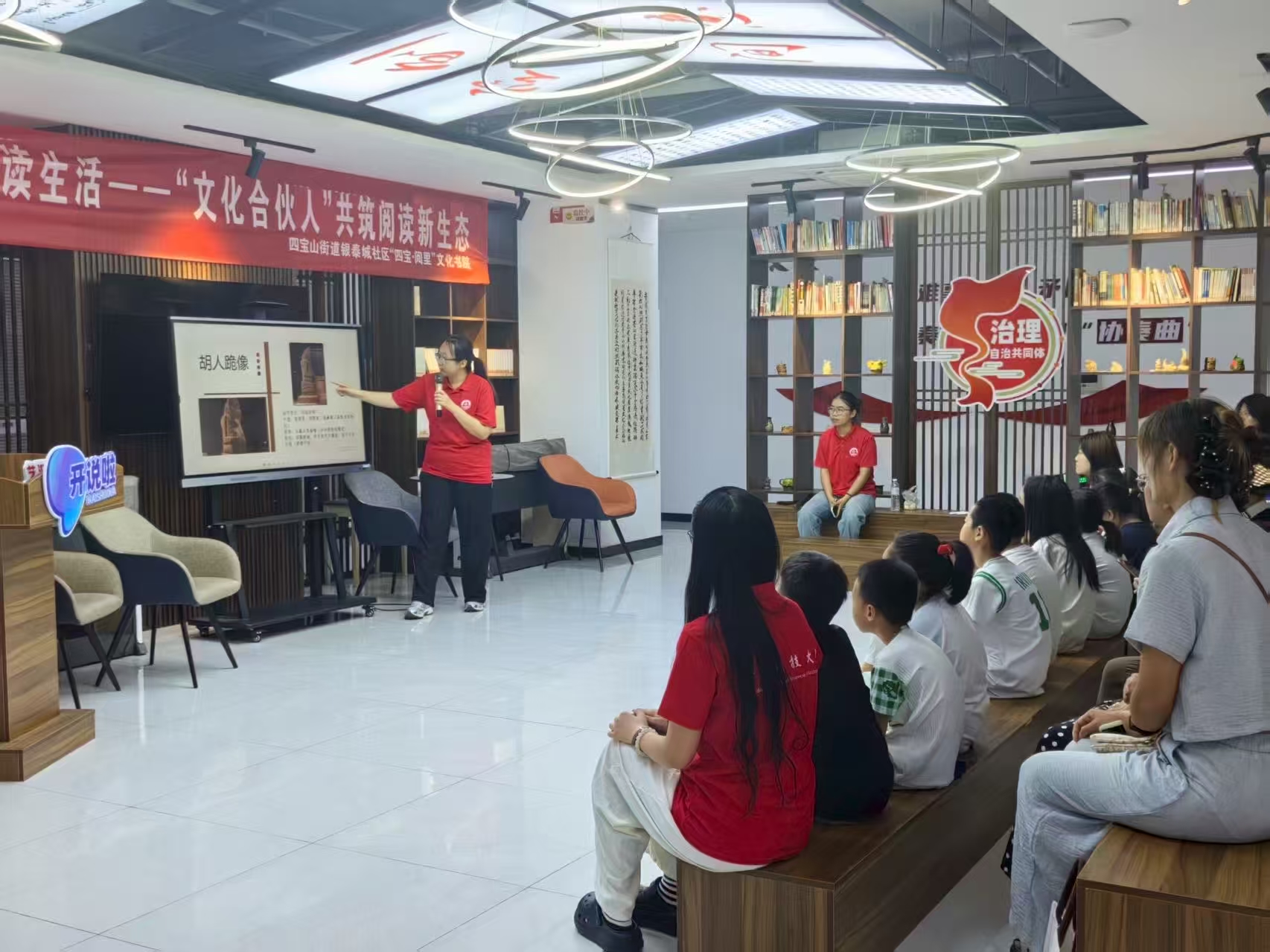 此次团队成员的到来更是提供良好的契机。团队创新提出“文化合伙人”机制,联合社区达人、非遗手艺人、高校学生共同搭建“四宝-阅里”文化书院。社区负责人表示:该种模式让文化传承从“单向输送”变为“共同创造”,即为社区非遗剪纸技艺的传承创建平台,同时也为高校学生提供宝贵的学习机会。未来,团队将依托“线上文化云课堂+线下非遗工作站”双平台,持续开展齐风文化宣讲、非遗剪纸技艺传承等系列活动,培育更多中华文化传承人。