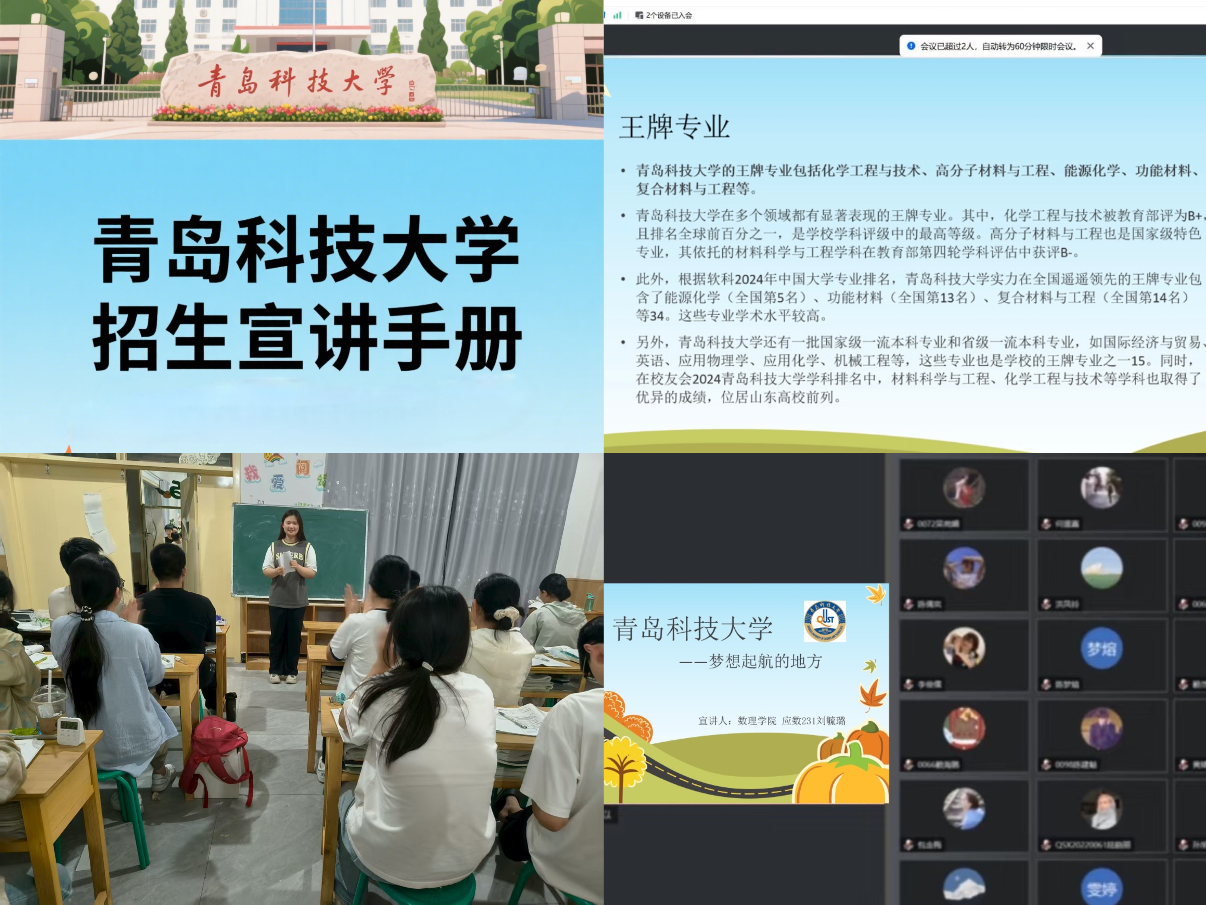 为助力高中学生深入了解高校情况、科学规划升学路径,2025年7月20日至28日,青岛科技大学赴聊城市莘县“圆梦青科,心系母校”招生宣讲团先后走进莘县实验高级中学和新城高级中学,开展了为期9天的招生宣讲活动。本次活动通过线上线下相结合的方式,全方位展示学校特色优势,为两校学生搭建起与高校沟通的桥梁。