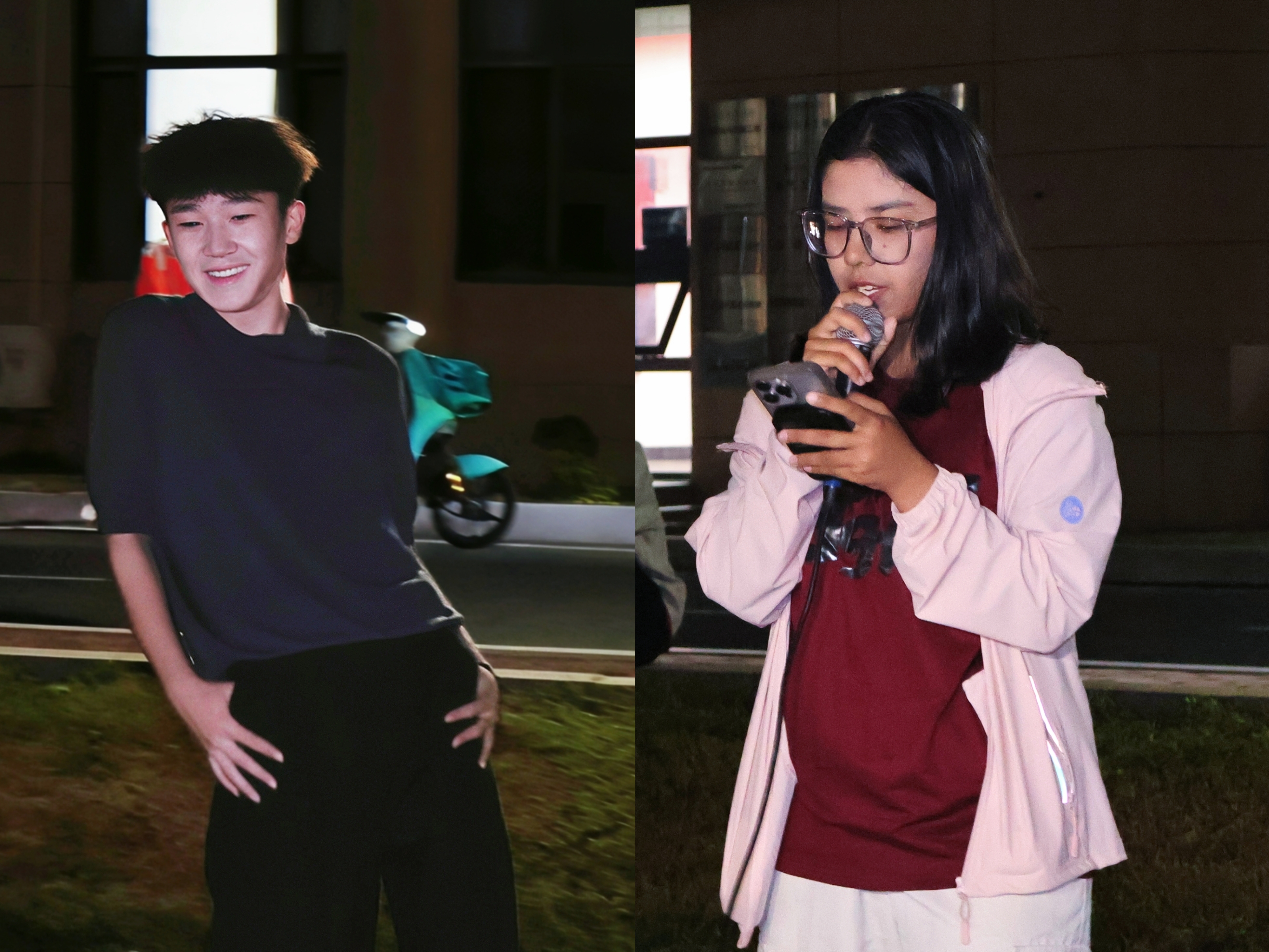 无论你来自哪里,我们都是“自”家人。新疆同学跳起民族舞,热情邀请各位同学共舞,舞姿轻盈优美、热情奔放,将民族歌舞的独特魅力展现得淋漓尽致;一曲现代舞曲动感登场,强劲鼓点瞬间点燃全场。同学们踩着节拍,用流畅的肢体动作演绎出青春活力。“自”家学子在秋日夜空下随性翩然起舞,每一次旋转、每一次舞动,都是民族团结的生动注脚。