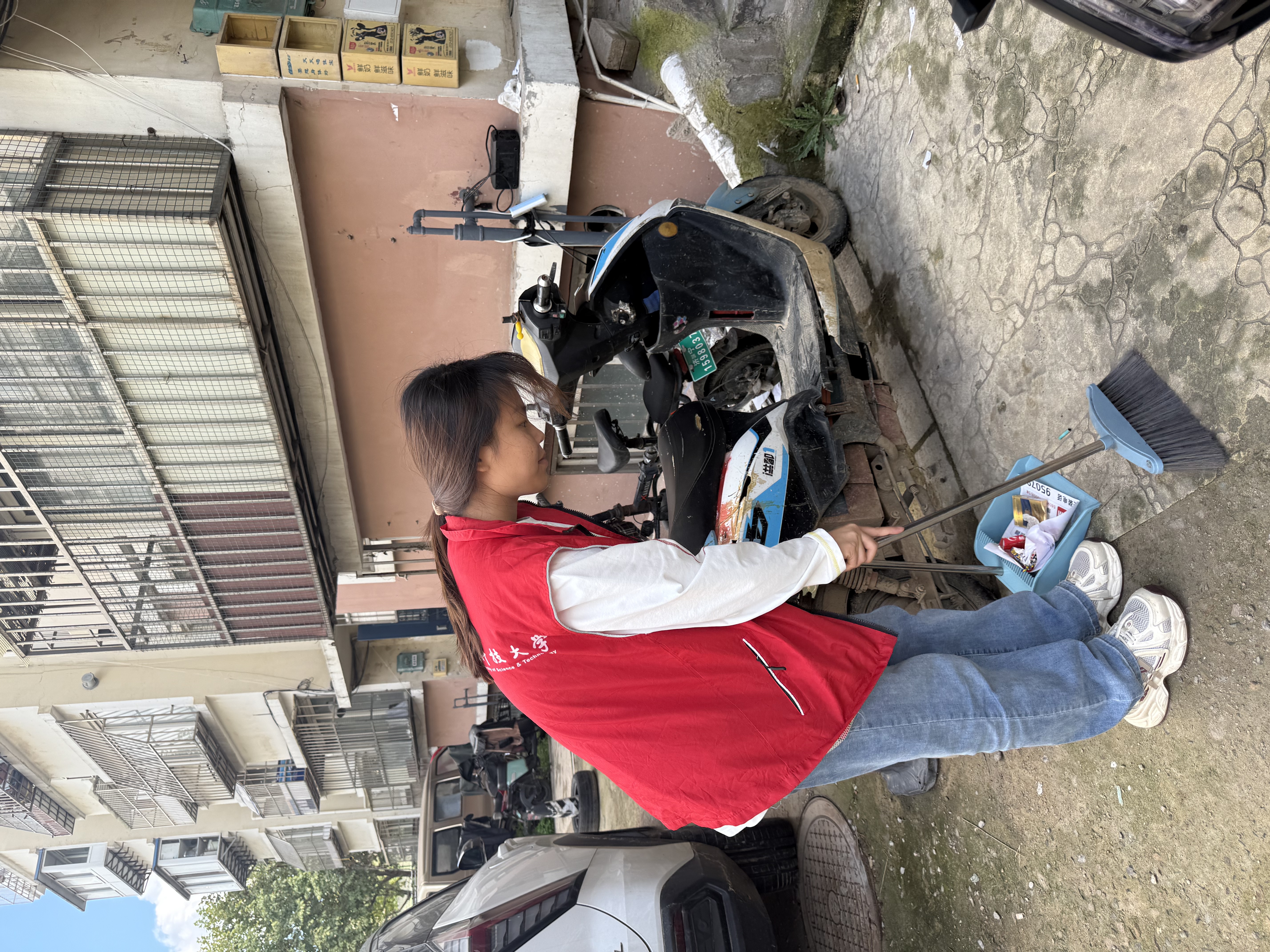 活动伊始,“橡尚”志愿服务队的志愿者们分组行动:清“癣”小分队手持铲刀,细致刮除楼道、墙面的小广告,从接缝到边角,将黏附的“城市牛皮癣”逐一清理;焕新小分队提着涂白漆料,对斑驳墙面、污渍区域进行均匀粉刷,让墙面重归整洁素净;清洁小分队手握扫帚、垃圾袋,对社区道路、绿化带的垃圾杂物进行全面清扫,不放过纸屑、烟蒂等细小废弃物。现场气氛热烈而有序,志愿者们时而弯腰铲刮,时而抬手粉刷,时而俯身捡拾,汗水里浸着对社区环境的热忱,行动中藏着对邻里生活的关切。
