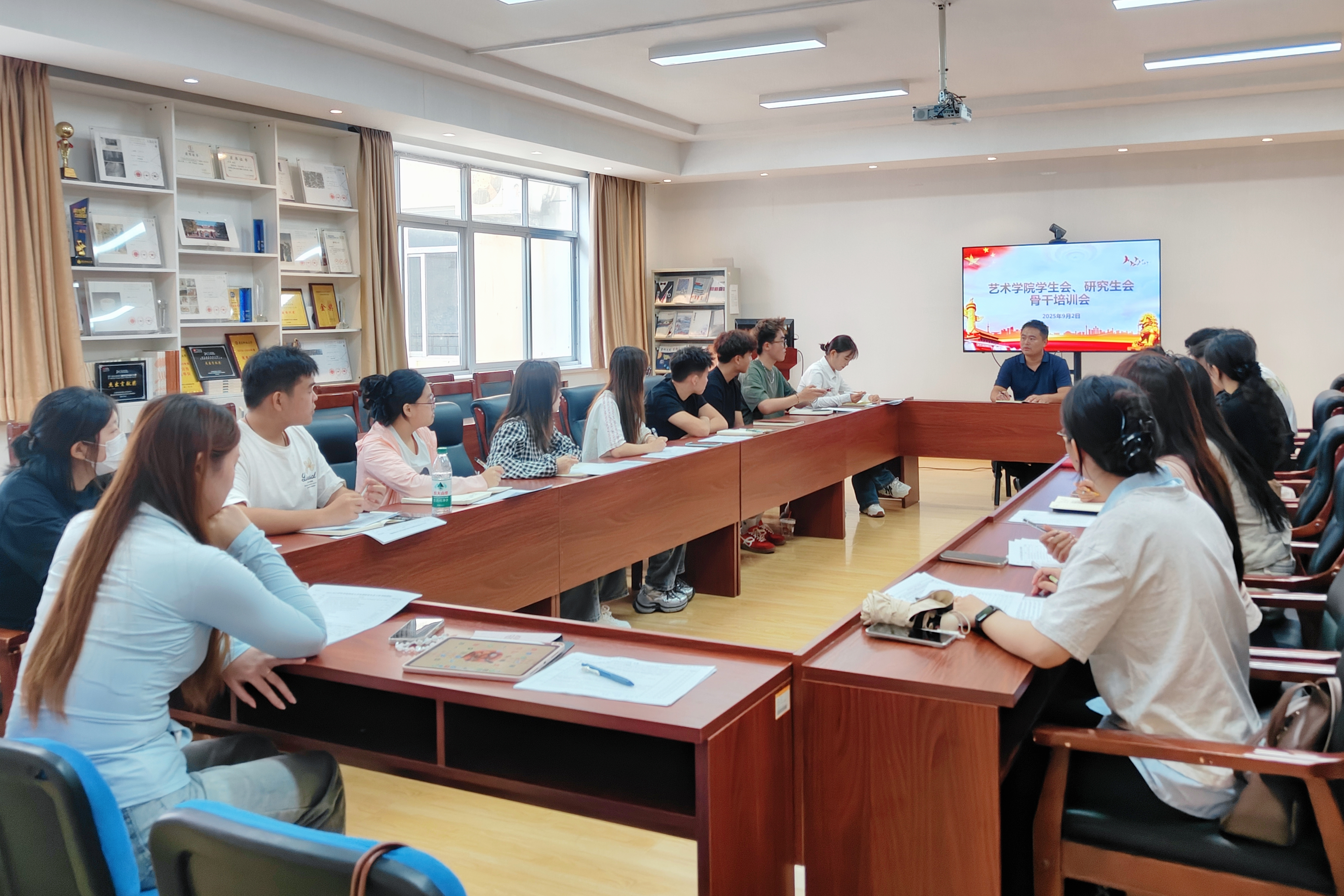 为做好新学期团学工作,9月2日下午,艺术学院团委召开团学干部培训会,团委书记颜枫出席,学生会与研究生会全体学生骨干参会,会议由辅导员宋晨曦主持。